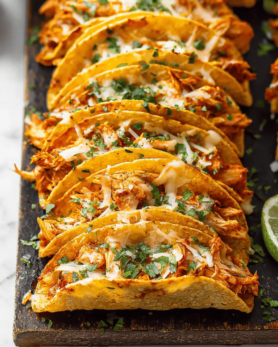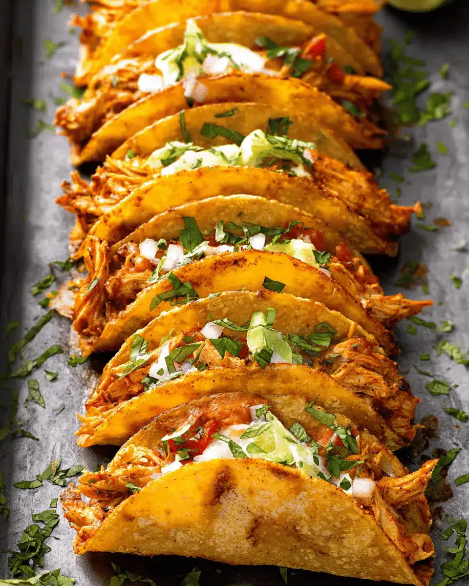 Why settle for store-bought when you can bring the fun of taco night right into your kitchen? Take advantage of easily accessible ingredients like shredded chicken breast and street taco corn tortillas, making these mini tacos an affordable and delicious option. Plus, you can easily customize toppings like sour cream, salsa, and fresh cilantro to suit everyone’s palate.