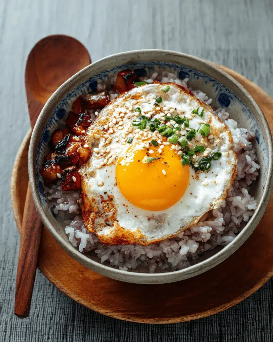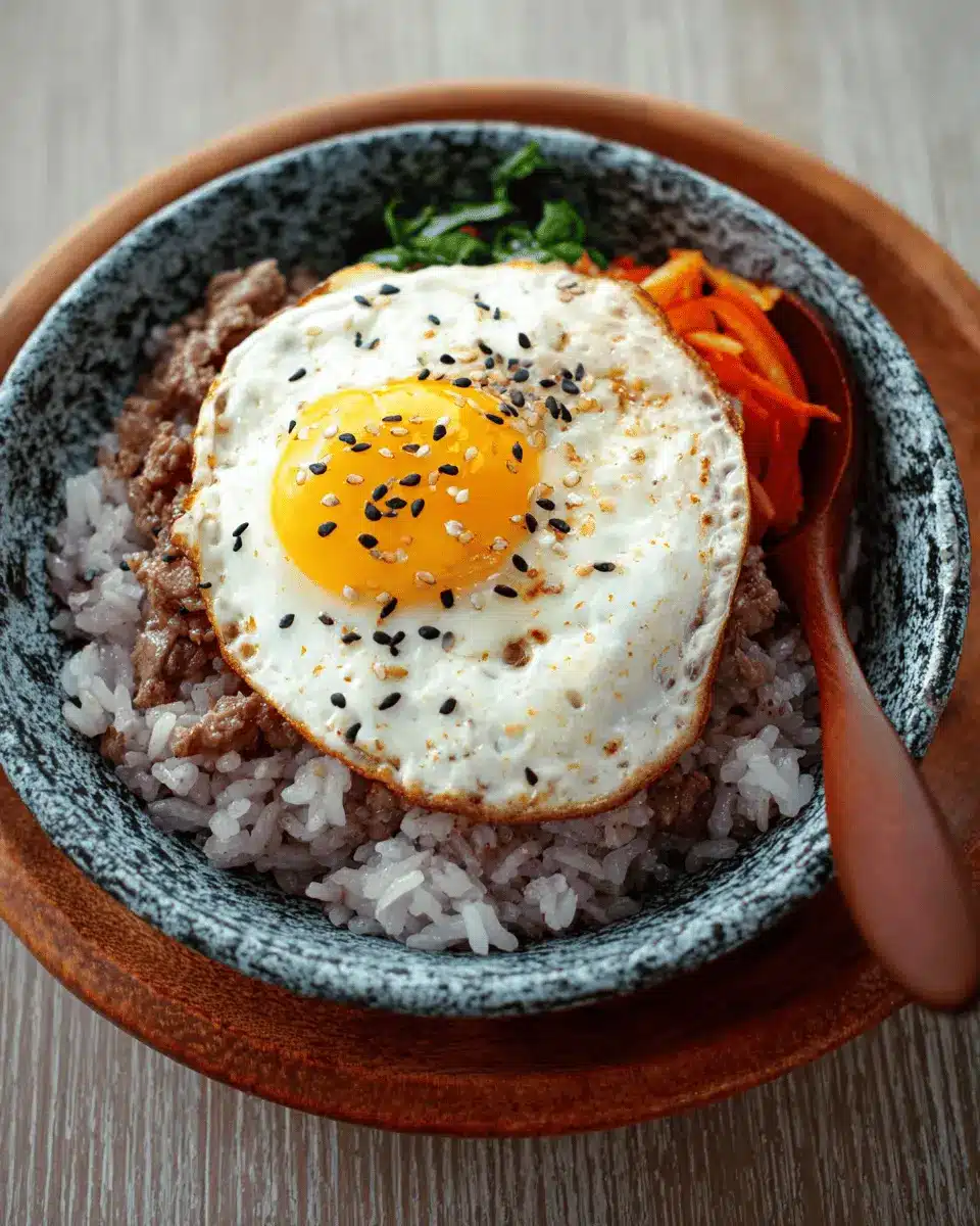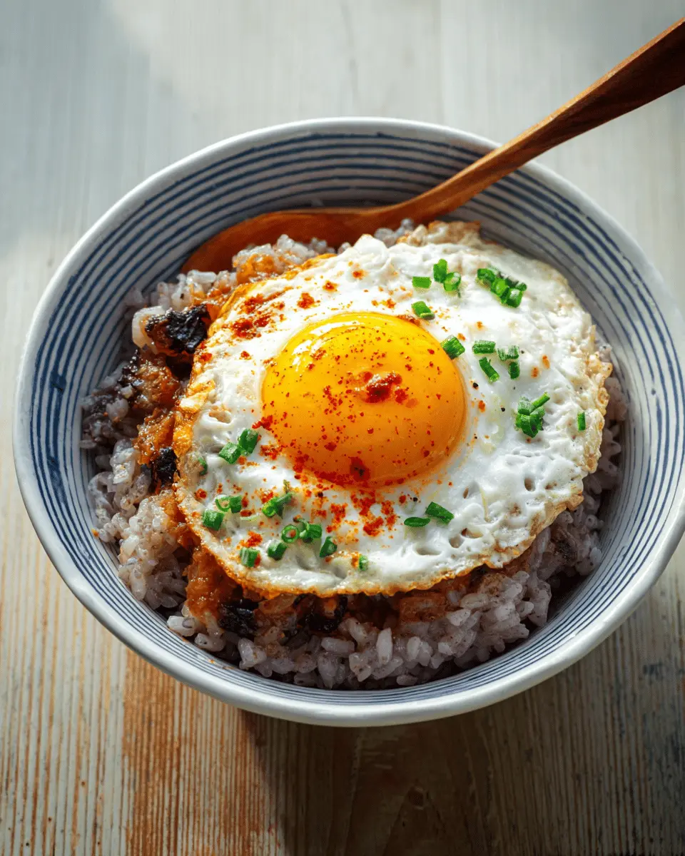 Moreover, you can customize your gyeran bap to suit your taste! Whether you want to add soy sauce, sesame oil, or even a dollop of spicy kimchi on the side, every variation brings a unique spin. Plus, it’s gluten-free and vegetarian-friendly, making it an inclusive option for all. So, why wait? Dive into this cozy bowl of joy and elevate your meal game effortlessly!