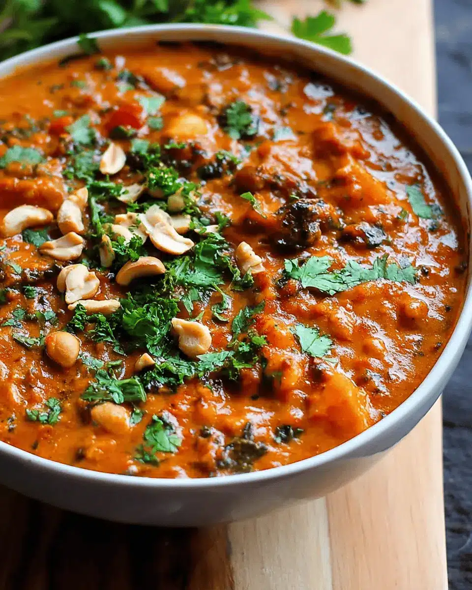 What’s remarkable about this stew is its versatility. Whether you’re celebrating a special occasion or simply looking for a nutritious weeknight dinner, African Peanut Stew fits the bill perfectly. It’s adaptable to various dietary preferences; you can make it vegan or add meat based on your mood. Just imagine sitting down to a warm bowl of stew, served over fluffy rice or quinoa, with the aroma of ginger and garlic filling the air—pure bliss!