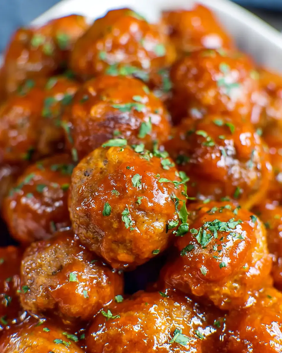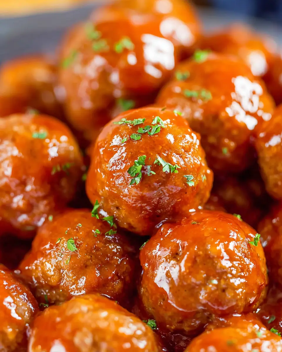 These meatballs are versatile! For a complete meal, serve them with coleslaw, garlic bread, or a refreshing salad. For parties, consider pairing with veggie platters or small bites like cheese and crackers to enhance the experience. The sweet and tangy flavors harmonize beautifully with many sides!