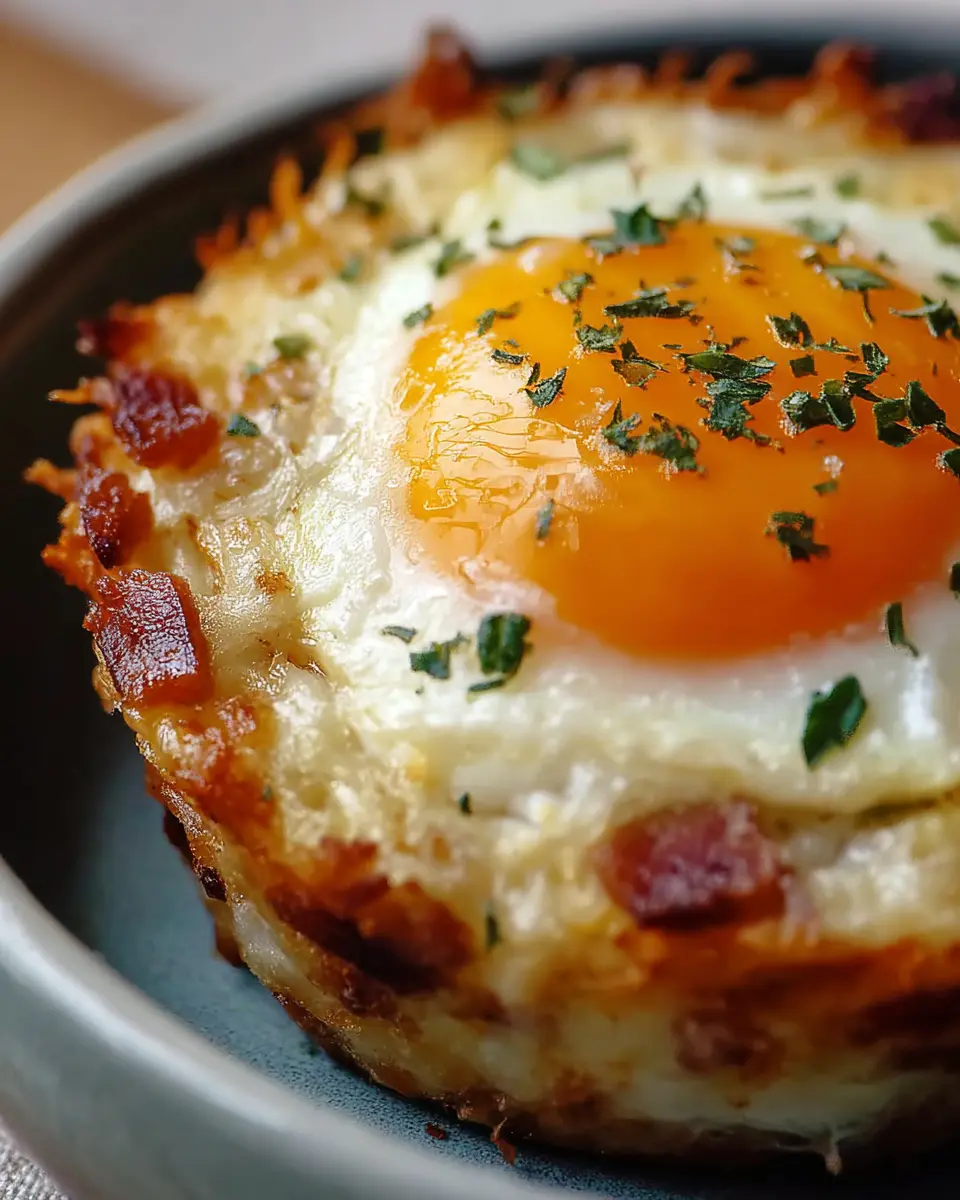 Return the muffin tin to the oven for another 8-10 minutes. Watch closely—this is where the magic happens! Ideally, you want those yolks to remain runny while the whites are just set. Remove your Baked Eggs Napoleon from the oven and let them rest for about 5 minutes. When you’re ready to serve, sprinkle with freshly chopped chives or green onions, parsley, and a dash of smoked paprika if you like. For a luxurious finishing touch, consider a drizzle of hollandaise sauce on the side. Trust me, your guests (or you!) will be singing ooh la la as they take that first glorious bite!