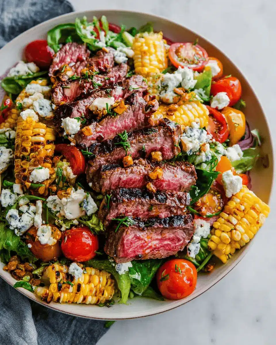 Balsamic Steak Gorgonzola Salad with Grilled Corn