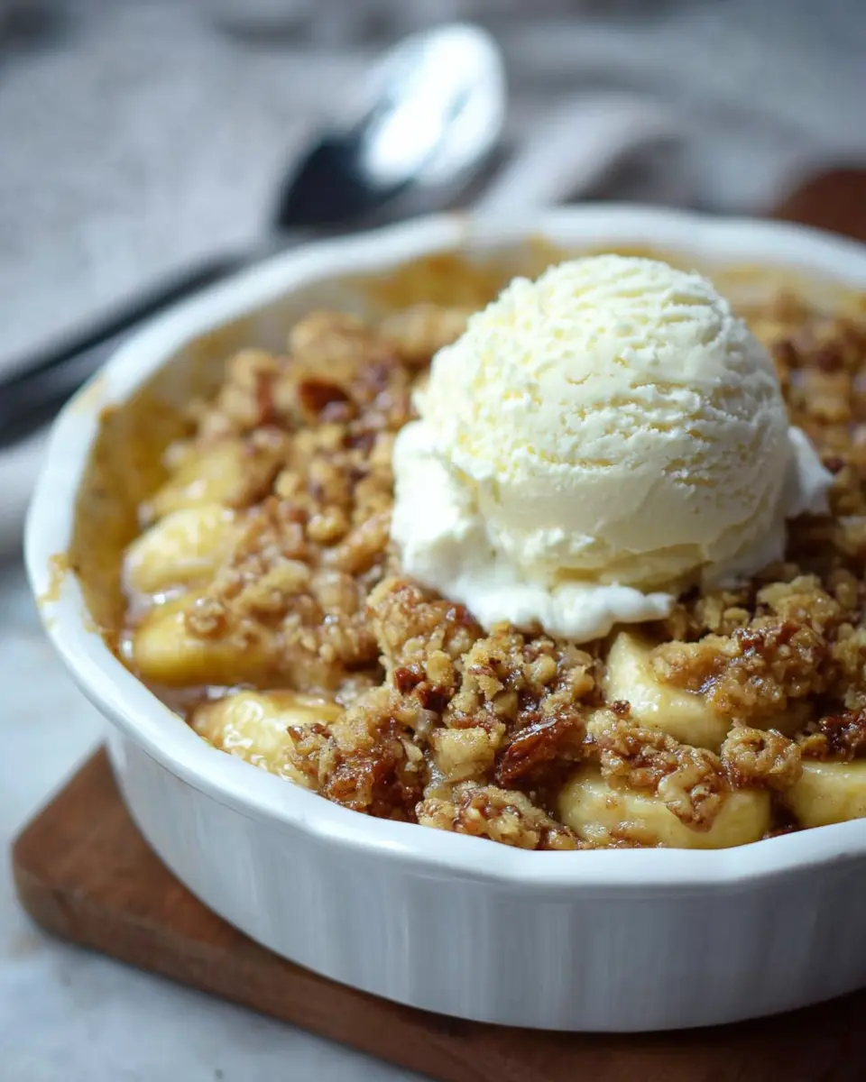 Once it's done, allow it to cool slightly before serving. It pairs beautifully with a scoop of vanilla ice cream, making it even more decadent. There you have it—a warm, comforting banana crumble perfect for any day!