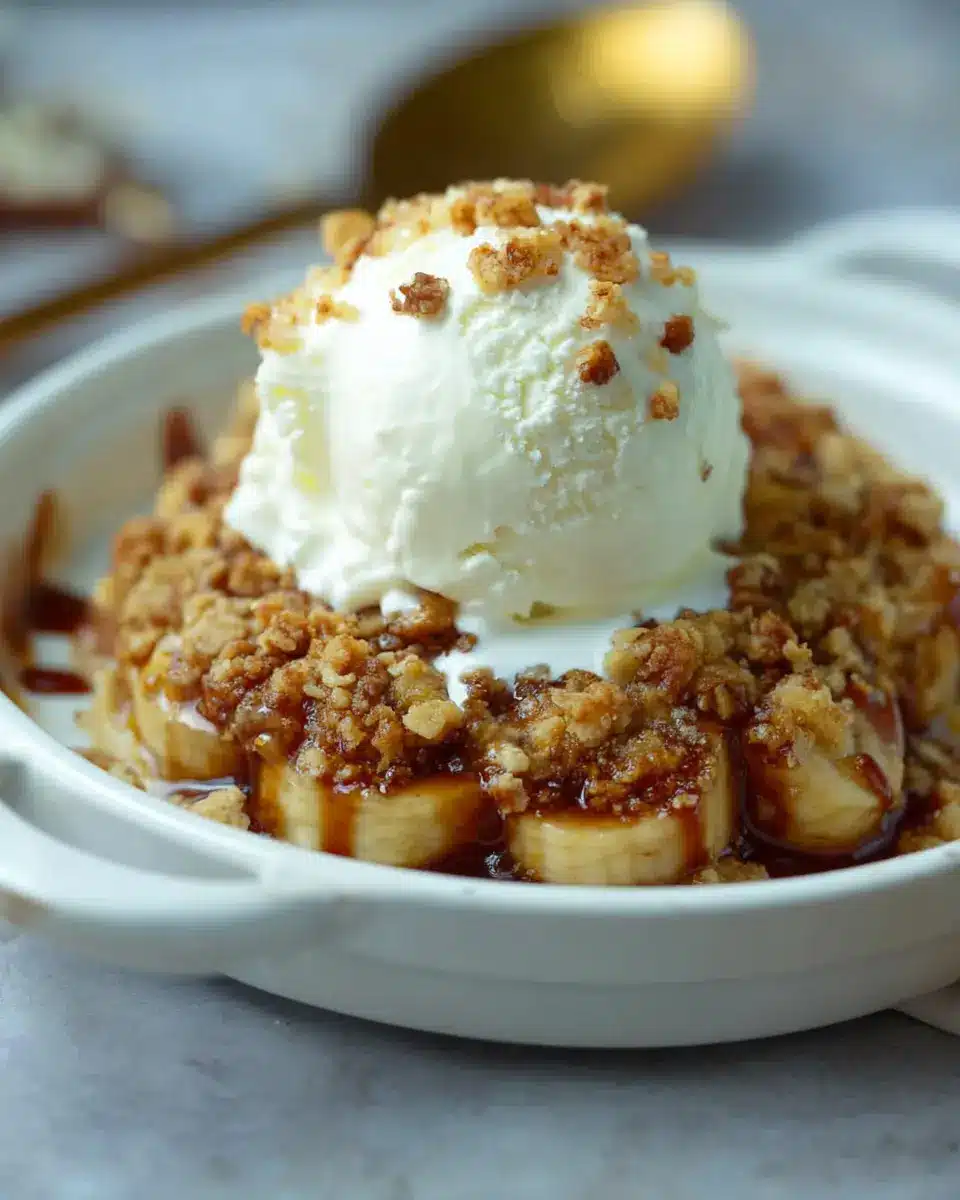 Elevate your banana crumble experience by serving it with a generous scoop of vanilla ice cream or a dollop of creamy Greek yogurt. The warm, soft bananas and crunchy pecan topping contrast beautifully with the cold, creamy addition. If you’re looking to up the indulgence factor, try drizzling some caramel or chocolate sauce over the top. This not only enhances the flavor but also brings a touch of decadence to your dessert.