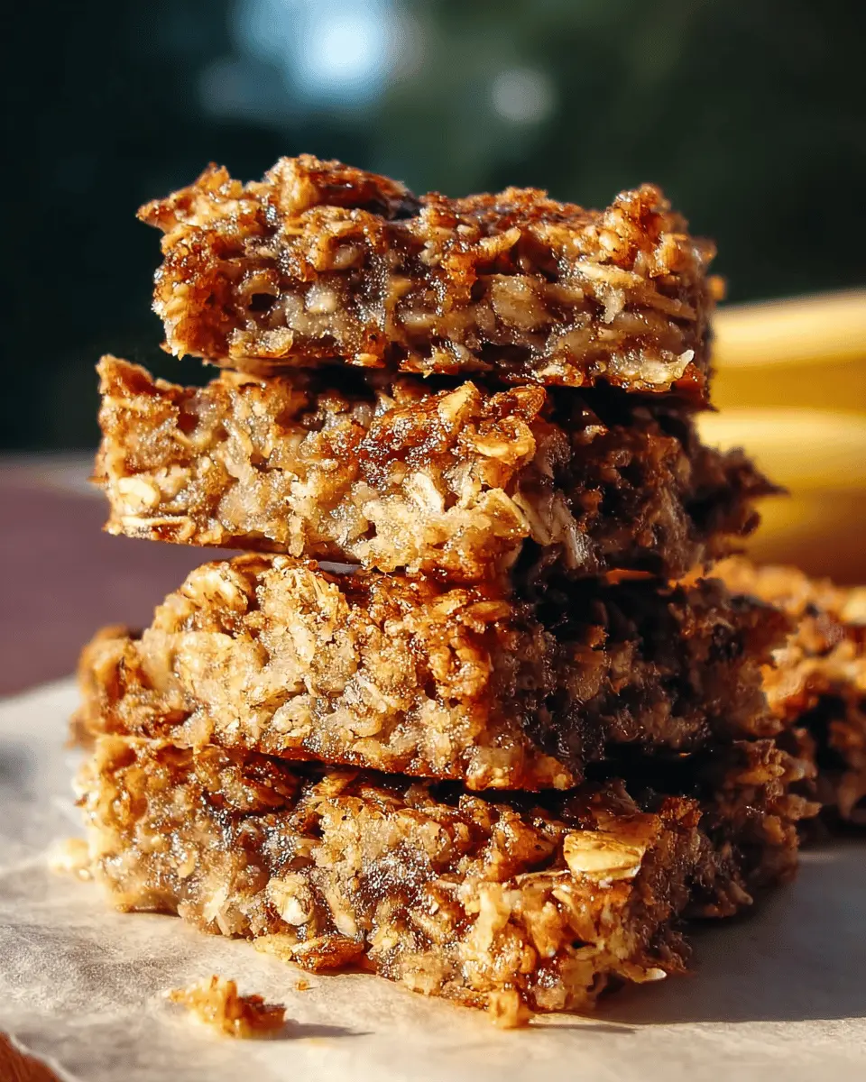 Kick off your day with banana oat bars as a delightful breakfast! Slice them warm or at room temperature, and enjoy alongside Greek yogurt or a spread of almond butter for some extra protein. Pair them with a refreshing smoothie or your favorite herbal tea to make your morning routine more energizing. The combination of oats and bananas provides the necessary fuel to keep you going until lunchtime. For a gourmet touch, sprinkle some fresh berries on top!