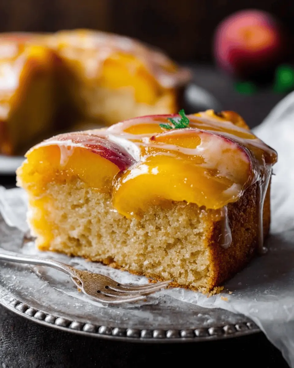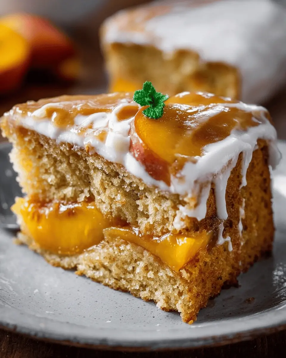 These ingredients work together to deliver a moist cake bursting with peach flavor, perfect for warm days.