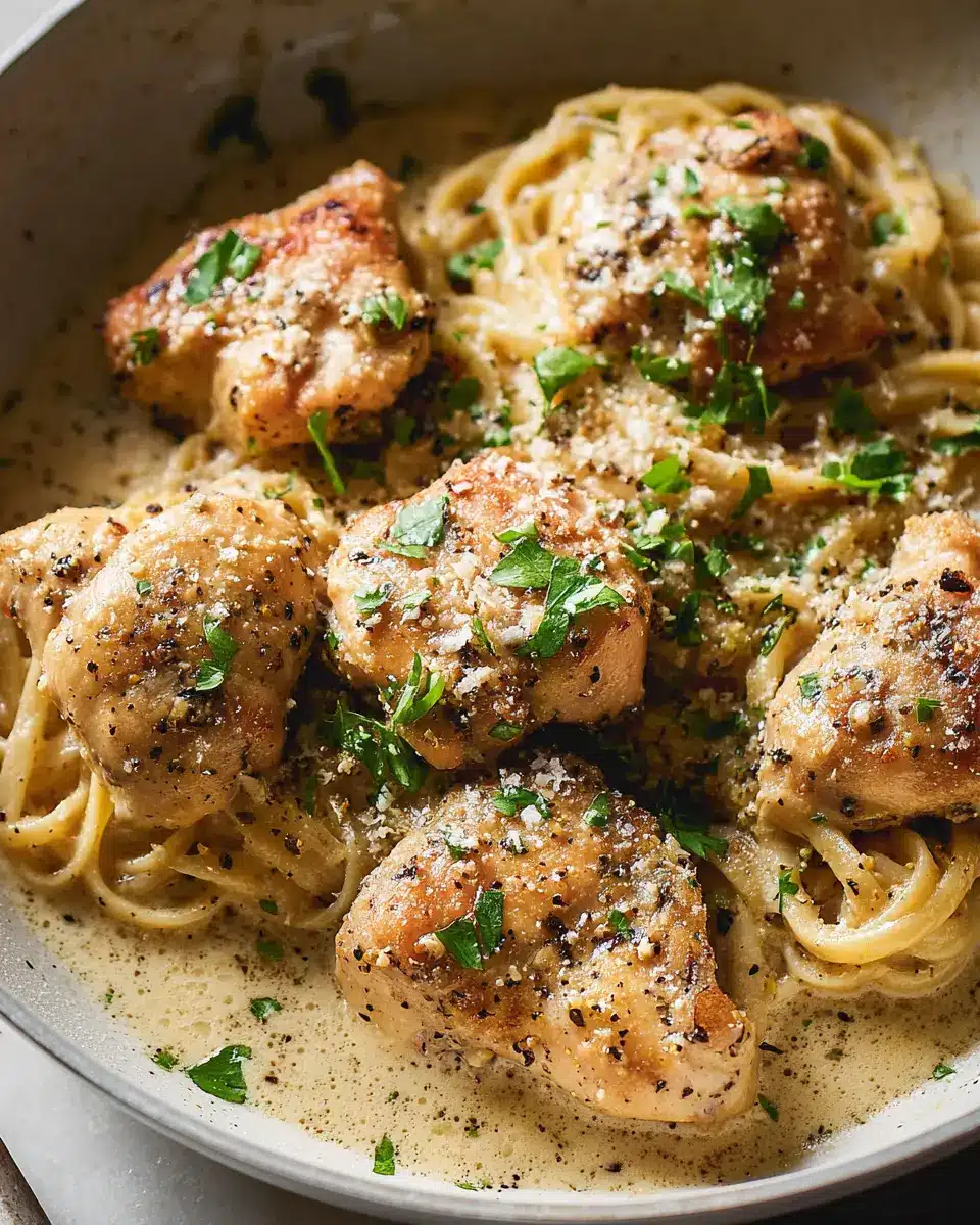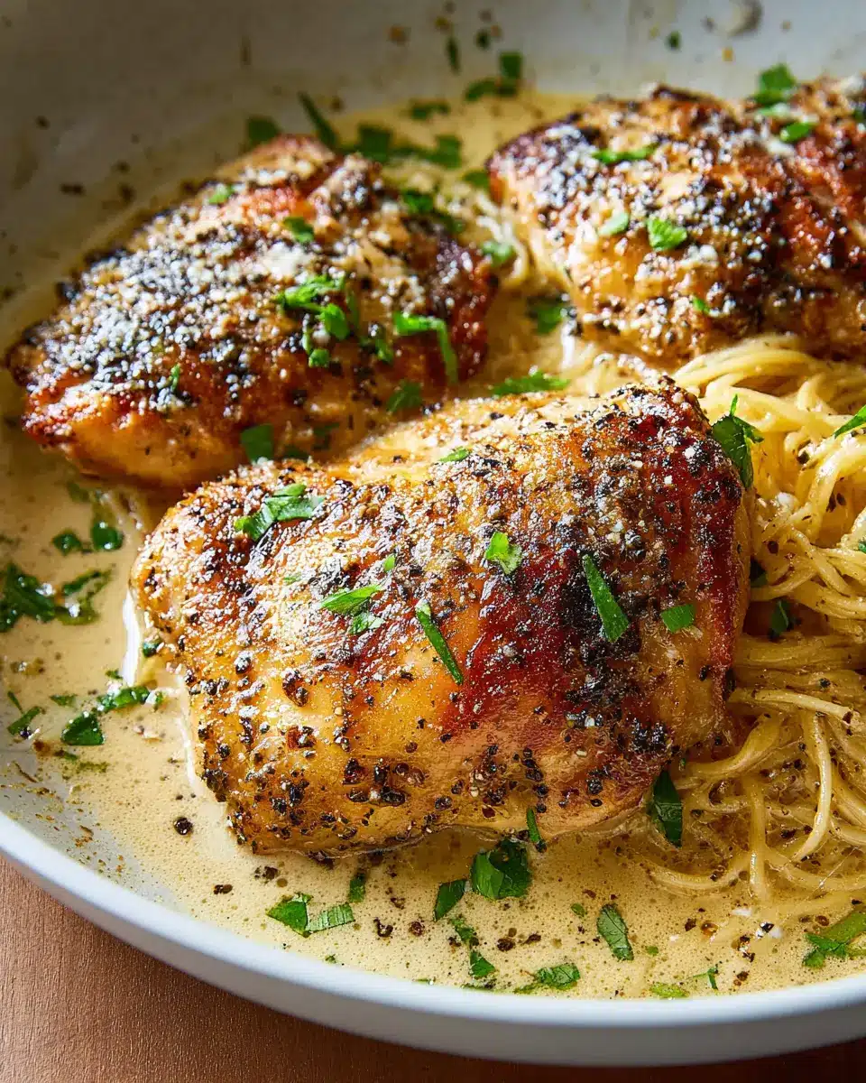 Cacio e Pepe Chicken is a delightful twist on the classic Roman pasta dish, perfect for busy young professionals looking for a comforting meal without spending hours in the kitchen. Imagine succulent chicken thighs infused with a rich, creamy sauce made from pecorino cheese and black pepper, creating a savory flavor that pairs beautifully with your favorite side like roasted vegetables or a simple salad. This dish not only satisfies your taste buds but also delivers a nutritious punch, making it a great addition to your weeknight dinner repertoire.