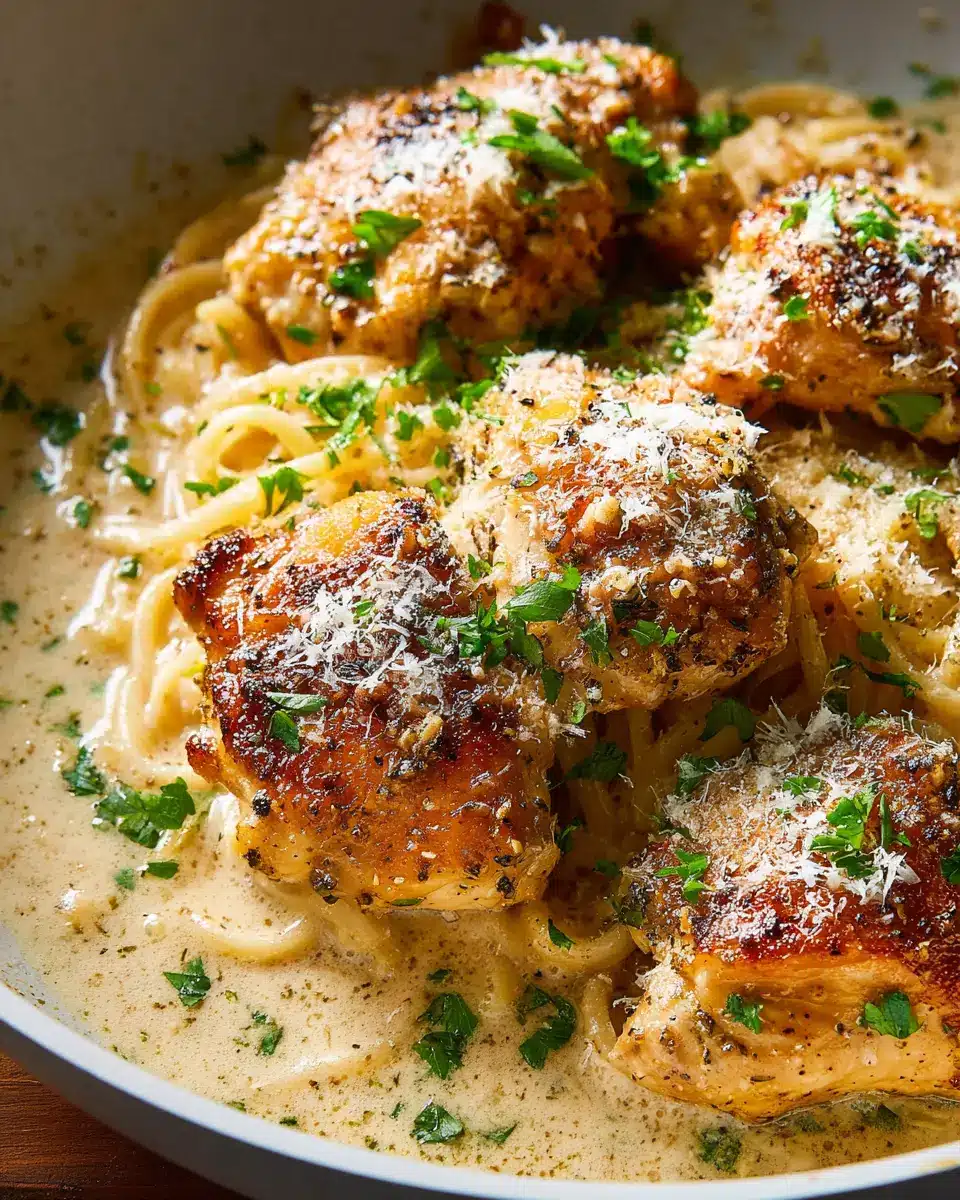 Finally, return the chicken to the skillet, letting it soak up that rich sauce, and finish with the remaining pecorino cheese and some chopped fresh parsley. Serve it with wedges of lemon on the side for a burst of freshness. A sprinkle of extra cheese never hurts either! This dish not only looks stunning but tastes like a cozy hug on a plate. Enjoy!