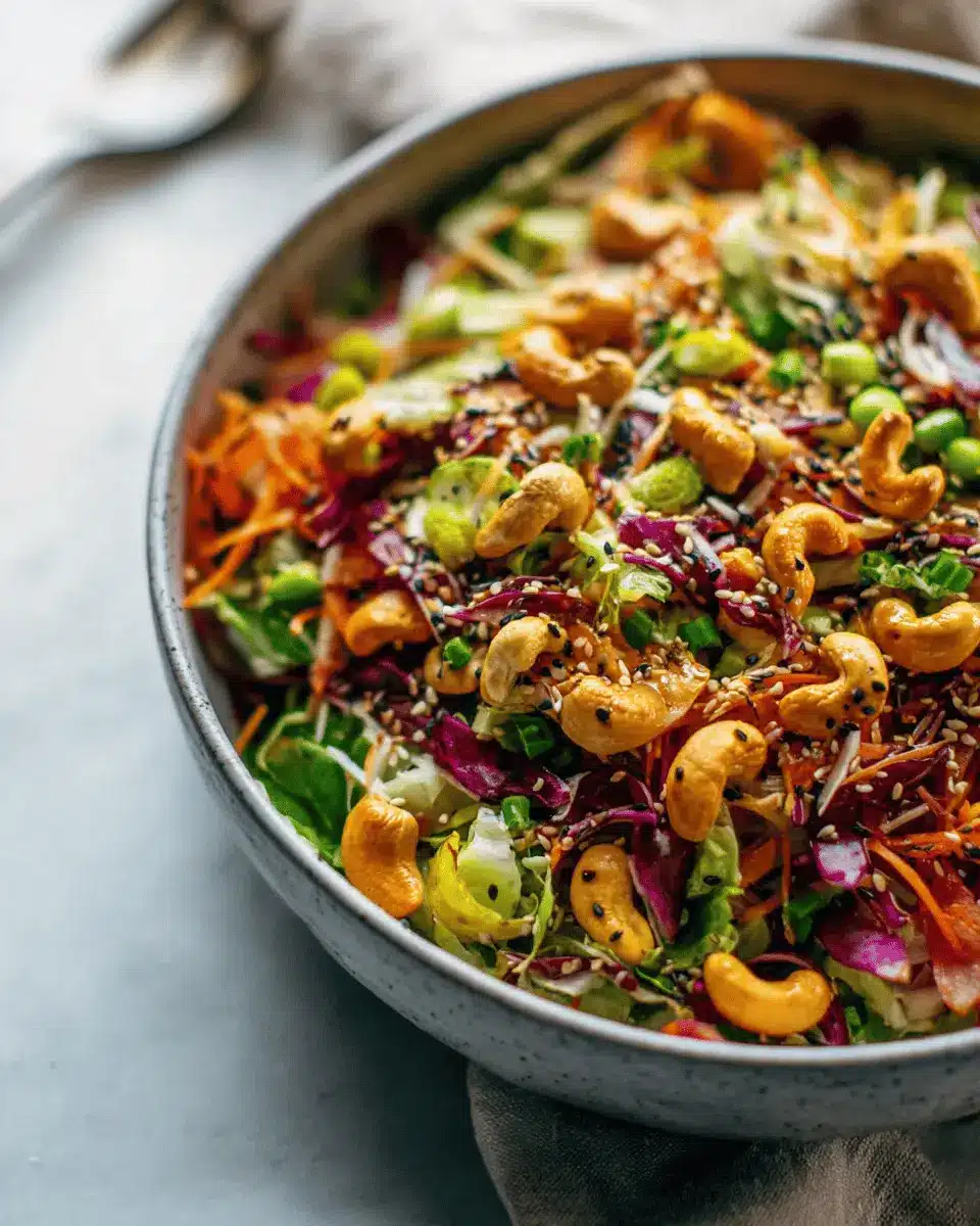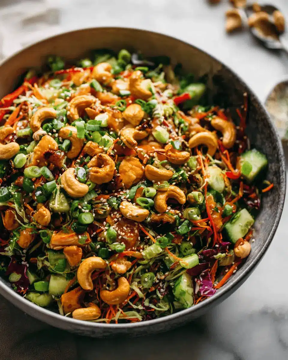 The Cashew Crunch Salad is as versatile as it is delicious. Pair it with grilled chicken or shrimp for a protein-packed option. You can also serve it alongside vegetarian dishes like quinoa cakes or spicy roasted chickpeas for a hearty meal. Don’t forget to add a light soup, such as miso soup, for a cozy touch. If you want to elevate the experience, consider offering ginger tea or a refreshing lemon-infused water.