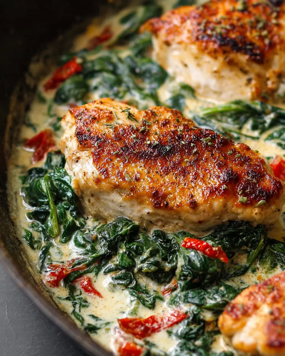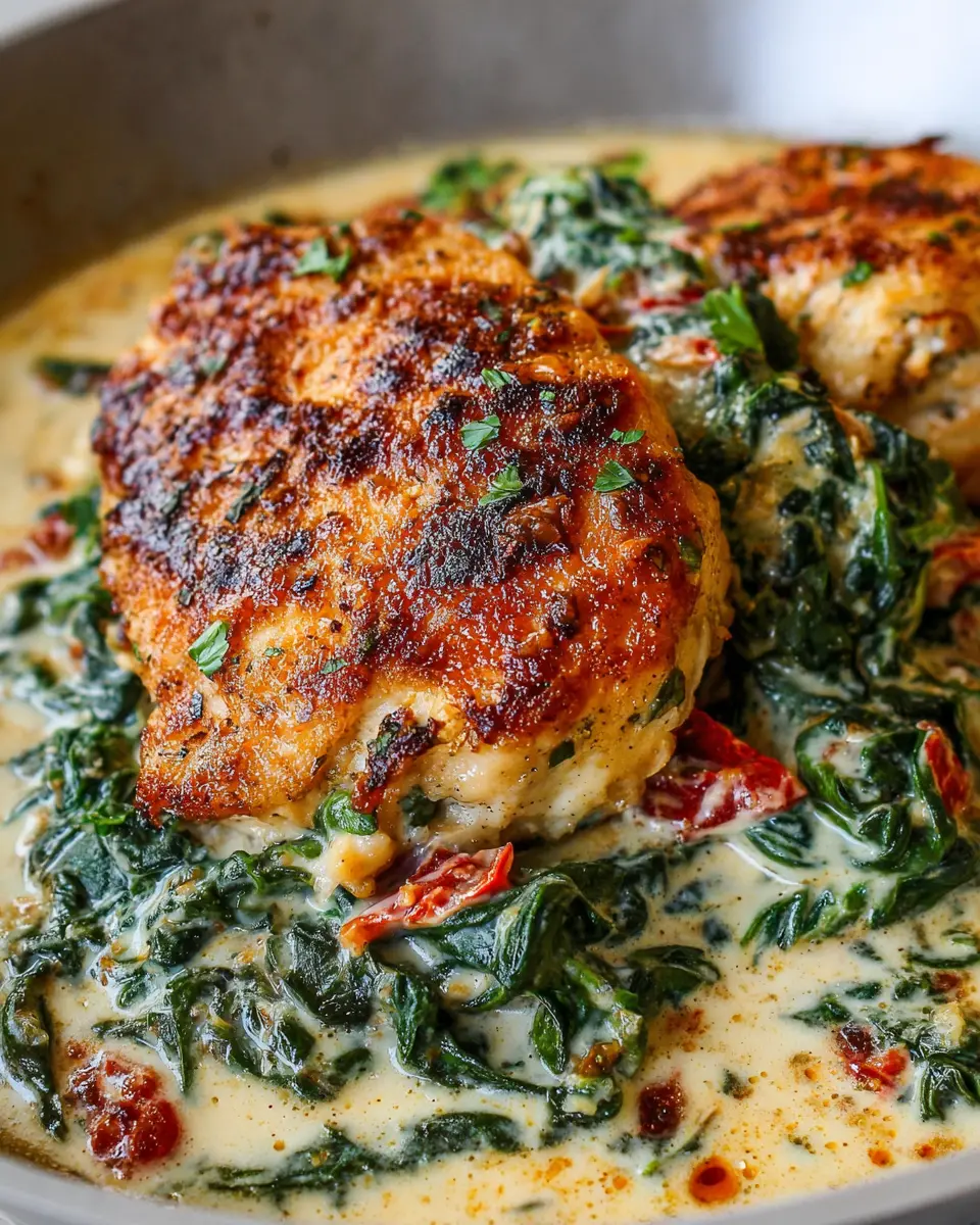 Impress your guests by plating the Chicken Florentine artistically. Place the chicken on a bed of sautéed spinach, then drizzle the creamy sauce artfully over the top. Garnish with a sprinkle of fresh parsley or extra grated Parmesan for a restaurant-quality presentation. Serving the chicken alongside crusty garlic bread or over a bed of lemon-infused rice can enhance the whole dining experience, making it memorable.