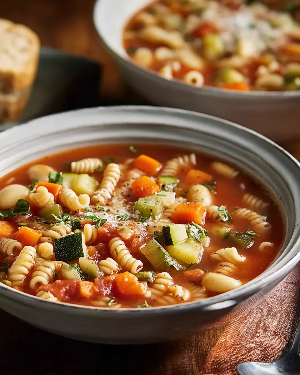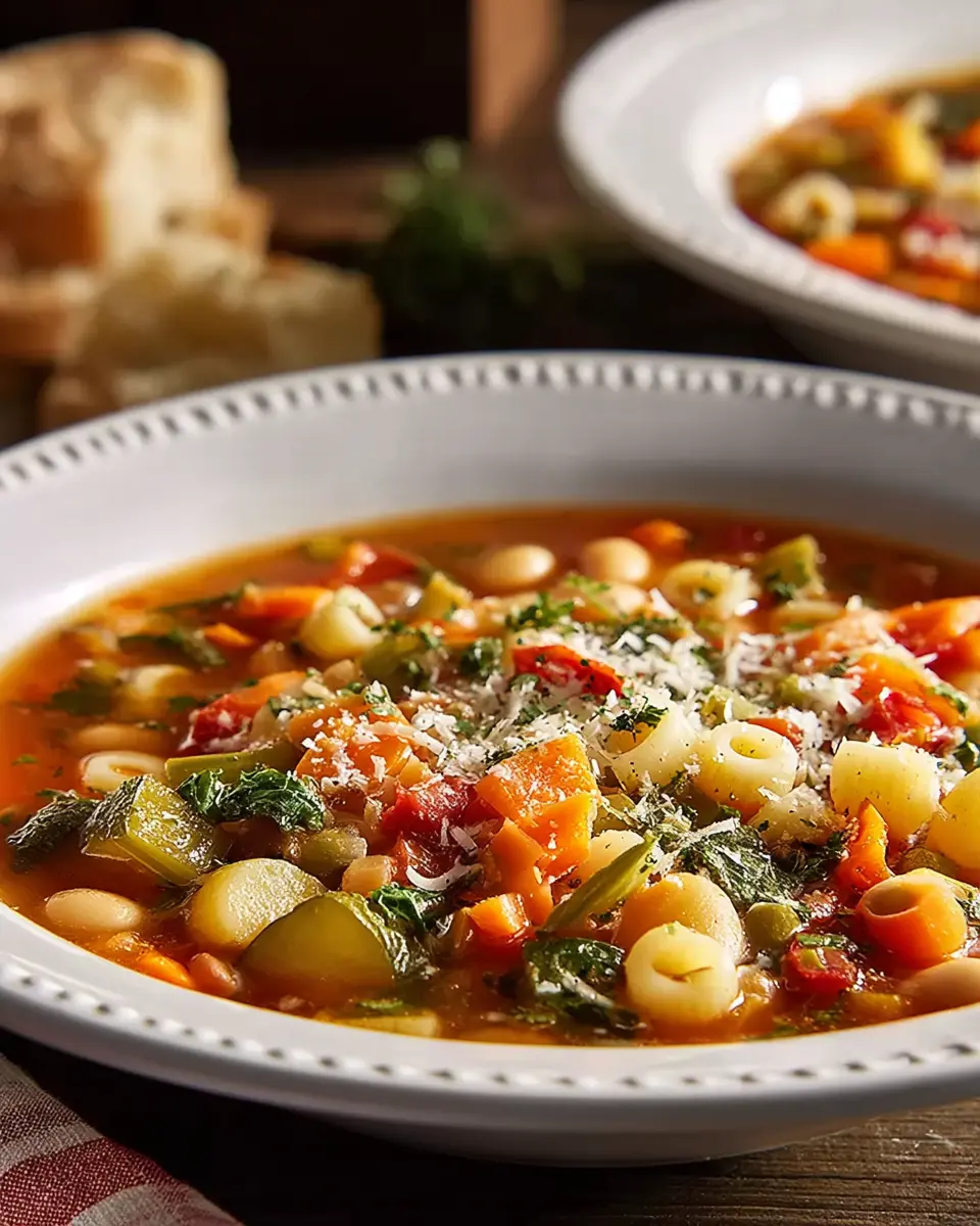 Absolutely! Classic minestrone soup freezes beautifully, making it a perfect meal prep option. Let the soup cool completely before transferring it to airtight containers or freezer bags. It can be stored for up to three months. When you’re ready to enjoy it again, simply thaw in the fridge overnight and reheat on the stovetop.
