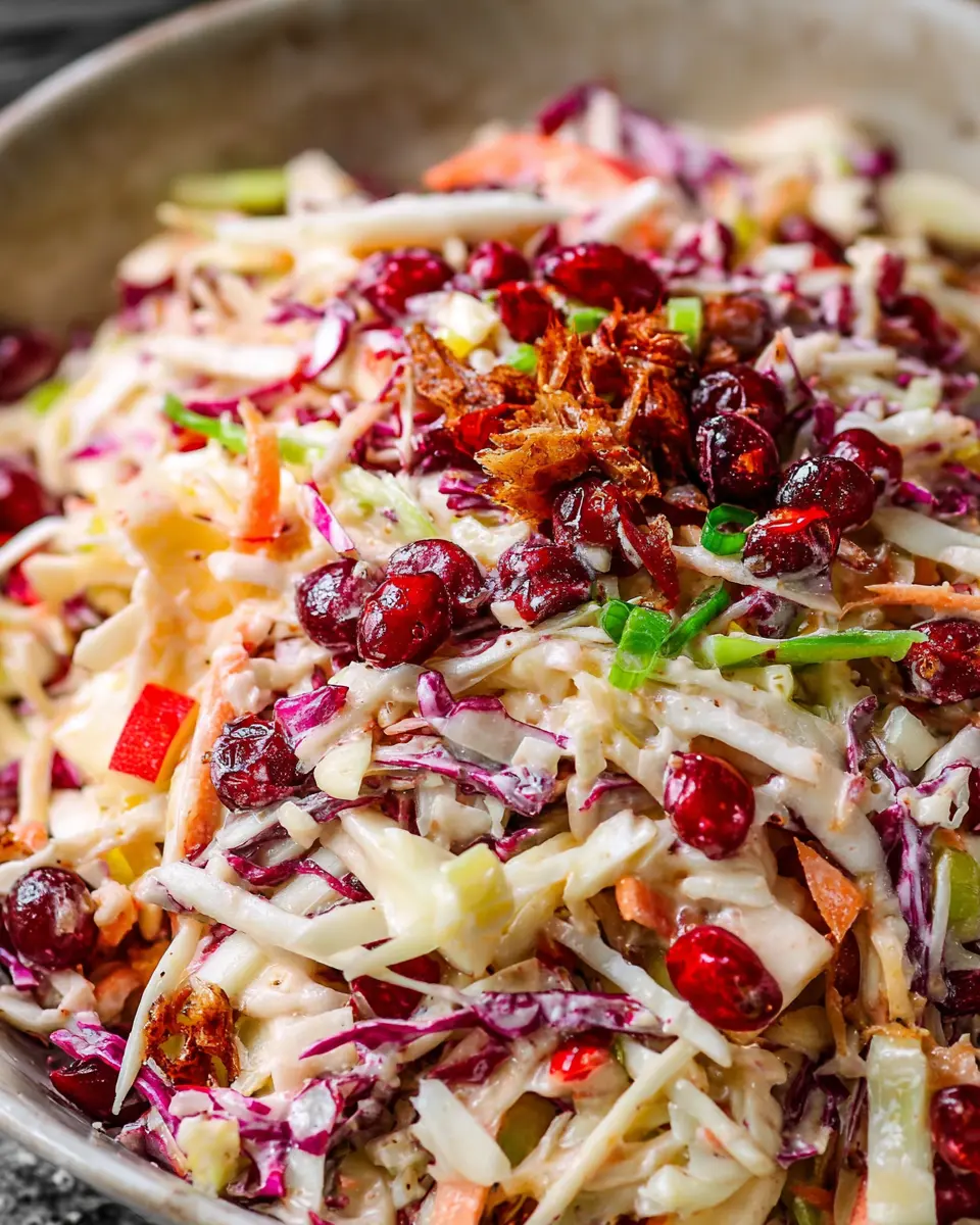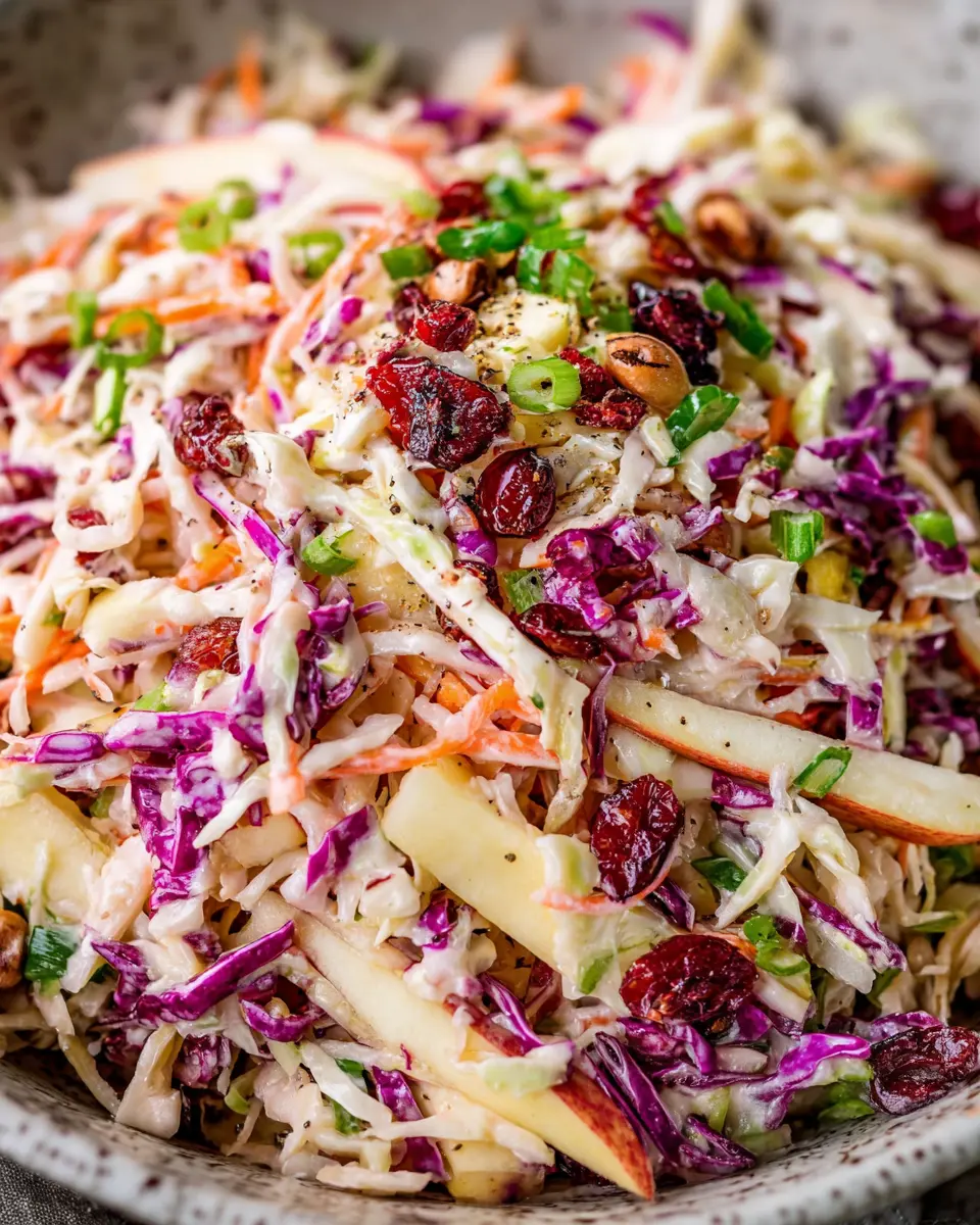 In summary, cranberry apple coleslaw is a delightful mix of flavors and textures that can brighten any meal. Perfect for gatherings or as a flavorful side dish, its effortless preparation makes it a go-to recipe. Enjoy the freshness and crunch, and don’t forget to share your variations!