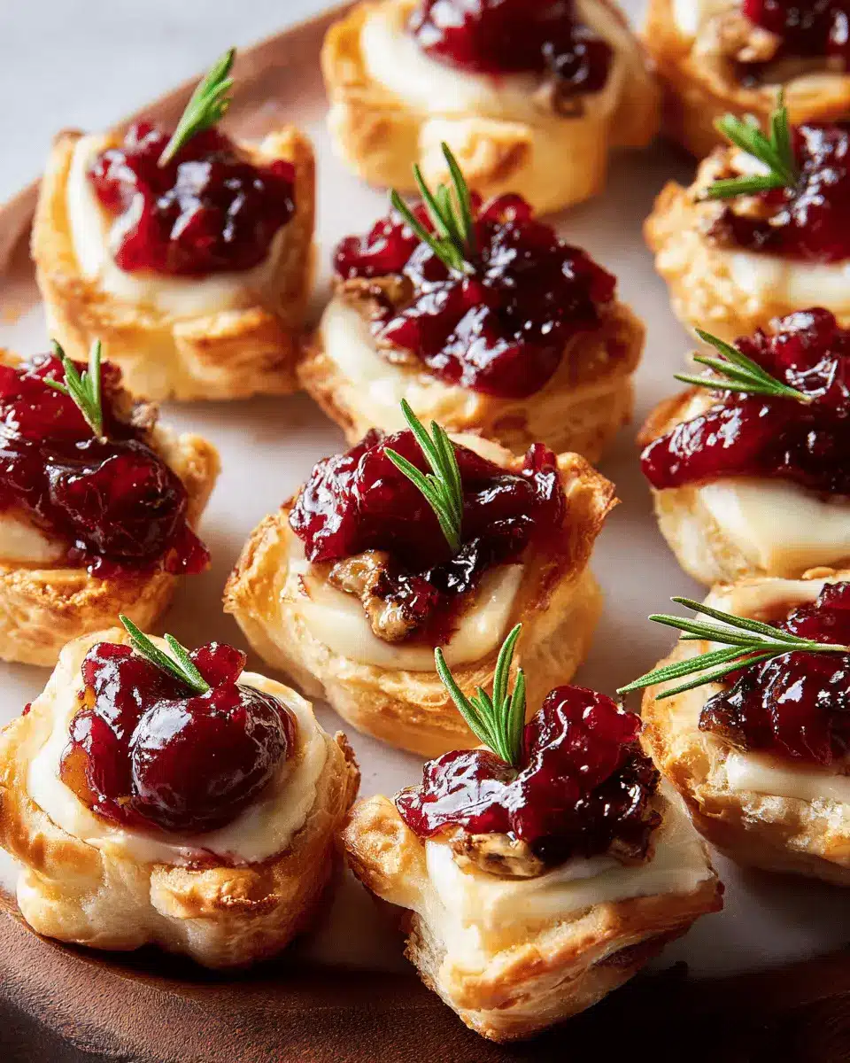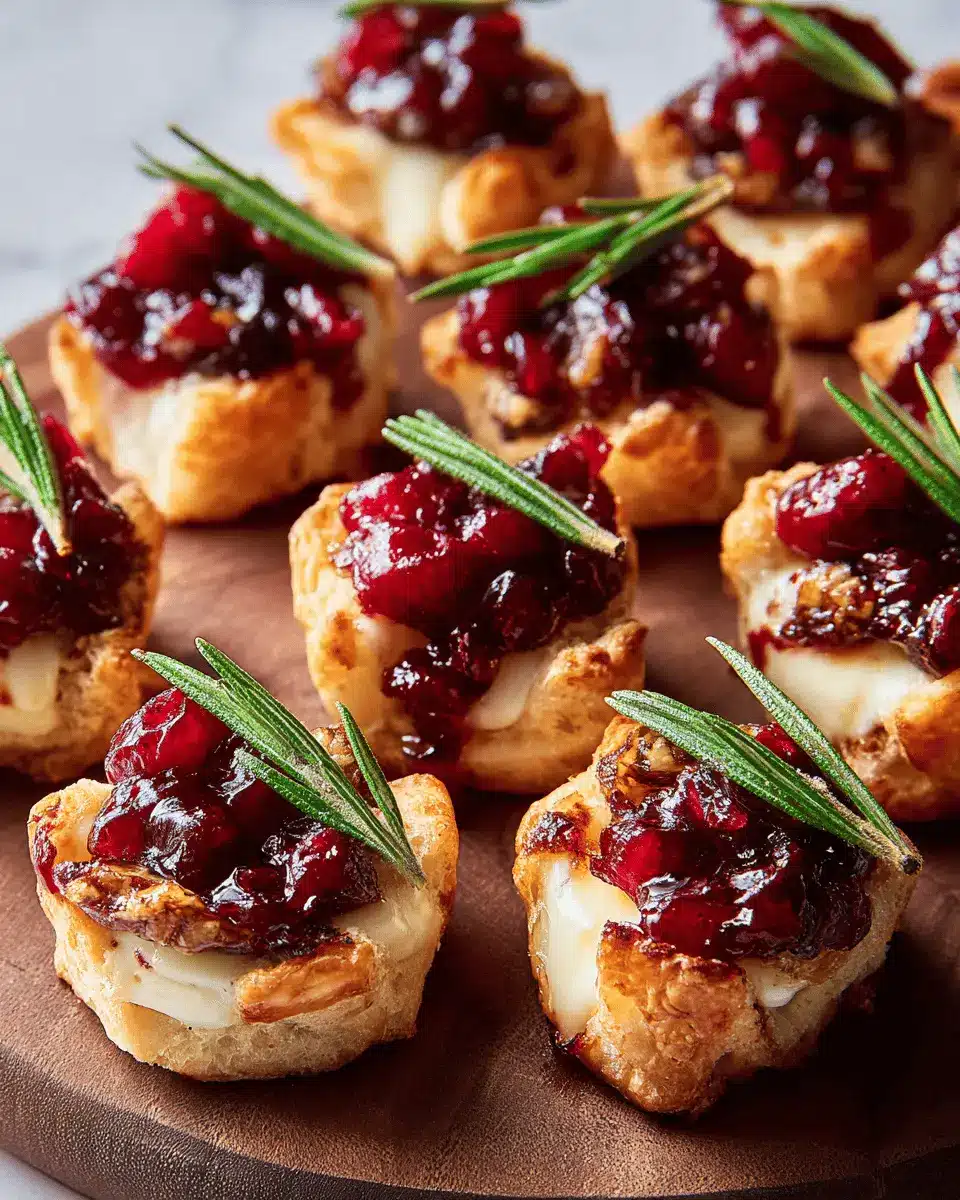 Tailor your cranberry brie bites to fit the season! For Thanksgiving, mix in some chopped apples or pears to give a nod to the autumn harvest. At Christmas, swap out the rosemary for fresh thyme and add a sprinkle of nutmeg for a warm, festive touch. Even for New Year’s Eve, consider adding a hint of orange zest to brighten up the flavors. With each holiday comes new inspiration—let the season guide your creativity! For more seasonal ideas, check out Epicurious for inspiration.