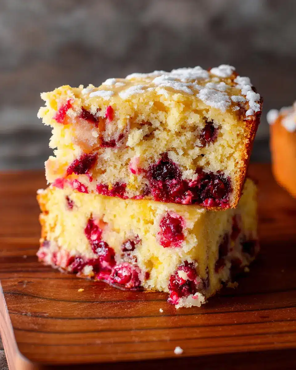 After baking, allow the cake to cool, slice, and serve with a side of turkey bacon or chicken ham for a hearty breakfast! Enjoy the harmony of sweet cranberries and bright orange flavors—your morning just got a significant upgrade.