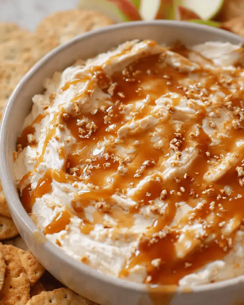 There you have it—a simple yet scrumptious cream cheese caramel apple dip ready for serving! Pair it with crisp apple slices or graham crackers, and you’ll be met with smiles all around. This dip can even be made ahead; just hold off on the toppings until you’re ready to serve. Enjoy every dip, and don’t be surprised if your guests keep coming back for more!