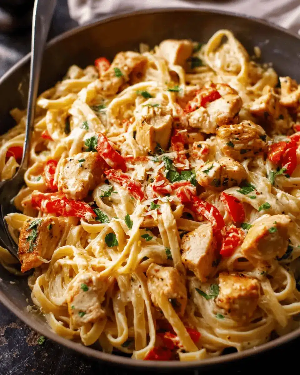 Once you're prepped, the cooking process zips along in 20 minutes. You'll sauté the chicken and veggies, create that rich, creamy sauce, and cook the pasta all in this timeframe.