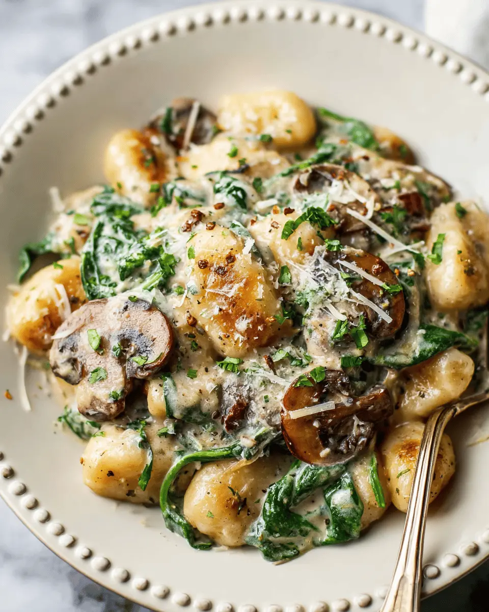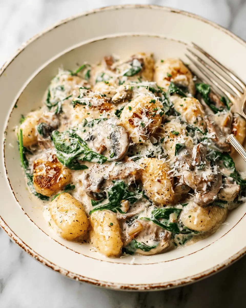 Vegan-Friendly Creamy Mushroom and Spinach Gnocchi
