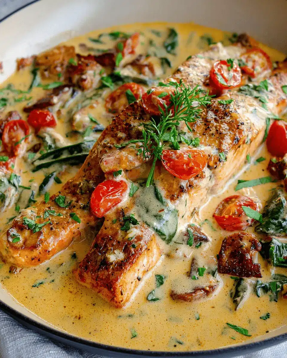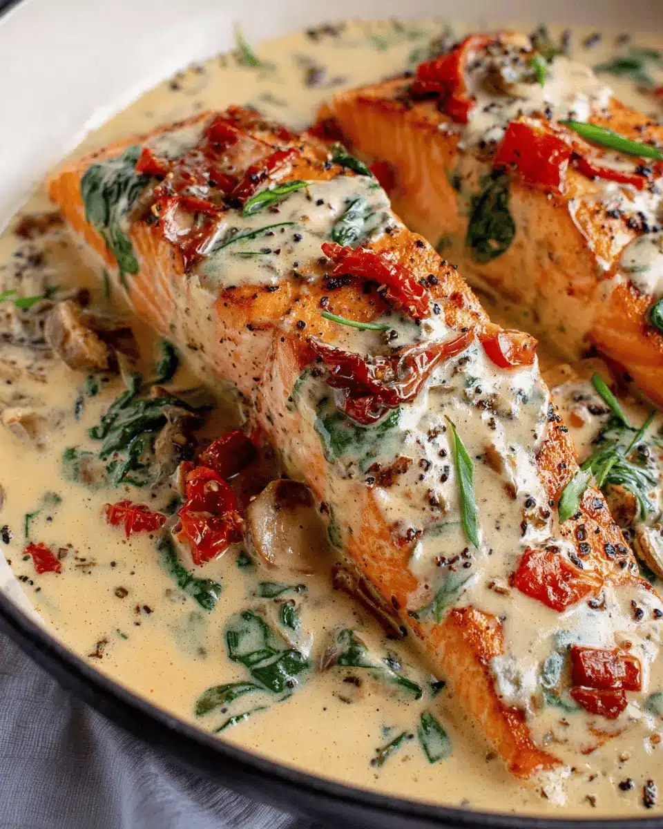 Imagine succulent salmon filets simmered in a creamy sauce bursting with flavors from sun-dried tomatoes, spinach, and Parmesan cheese. This recipe marries indulgence and health—perfect for a cozy dinner or your next dinner party. So, don your apron and step into the kitchen; let’s whip up some Creamy Tuscan Salmon that’s sure to delight your palate!