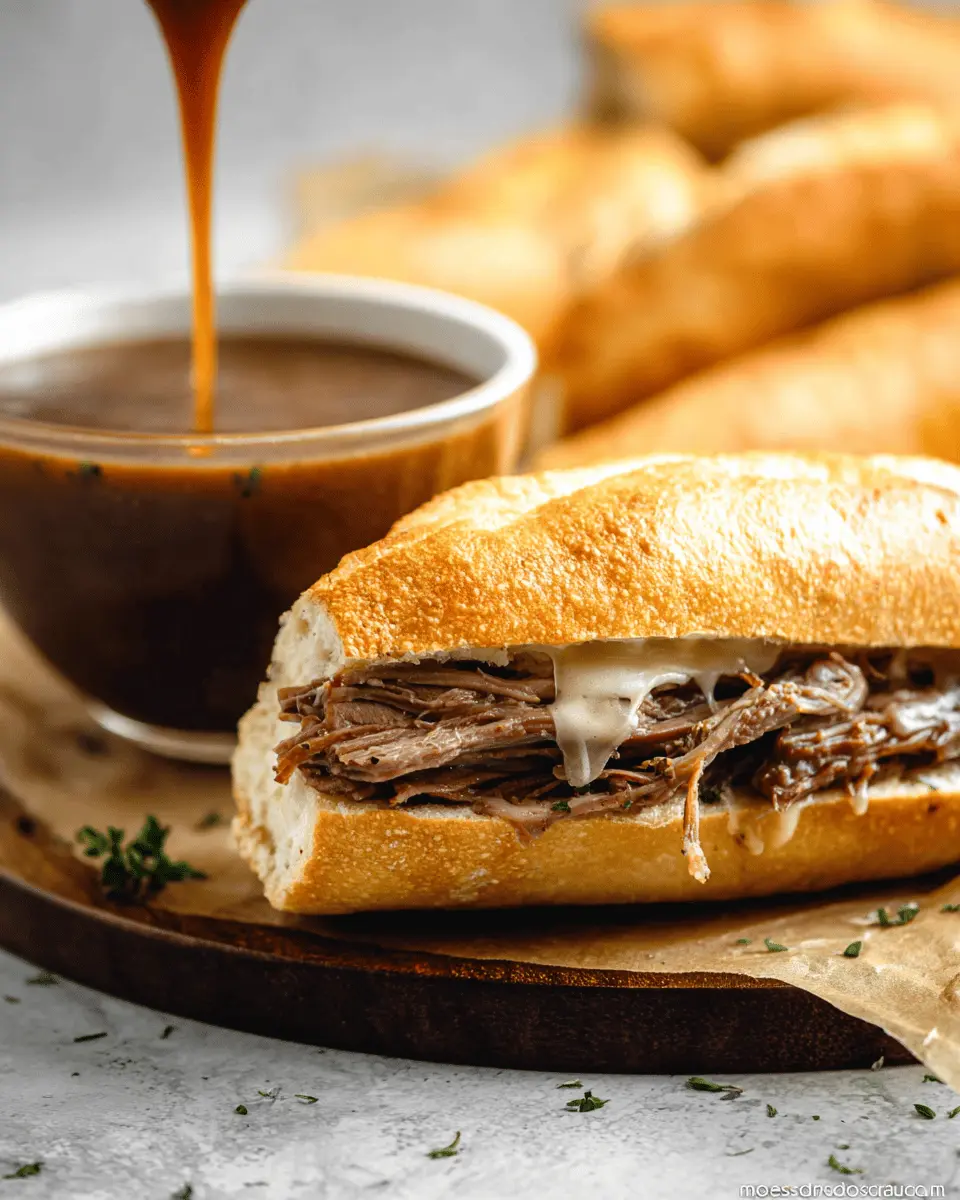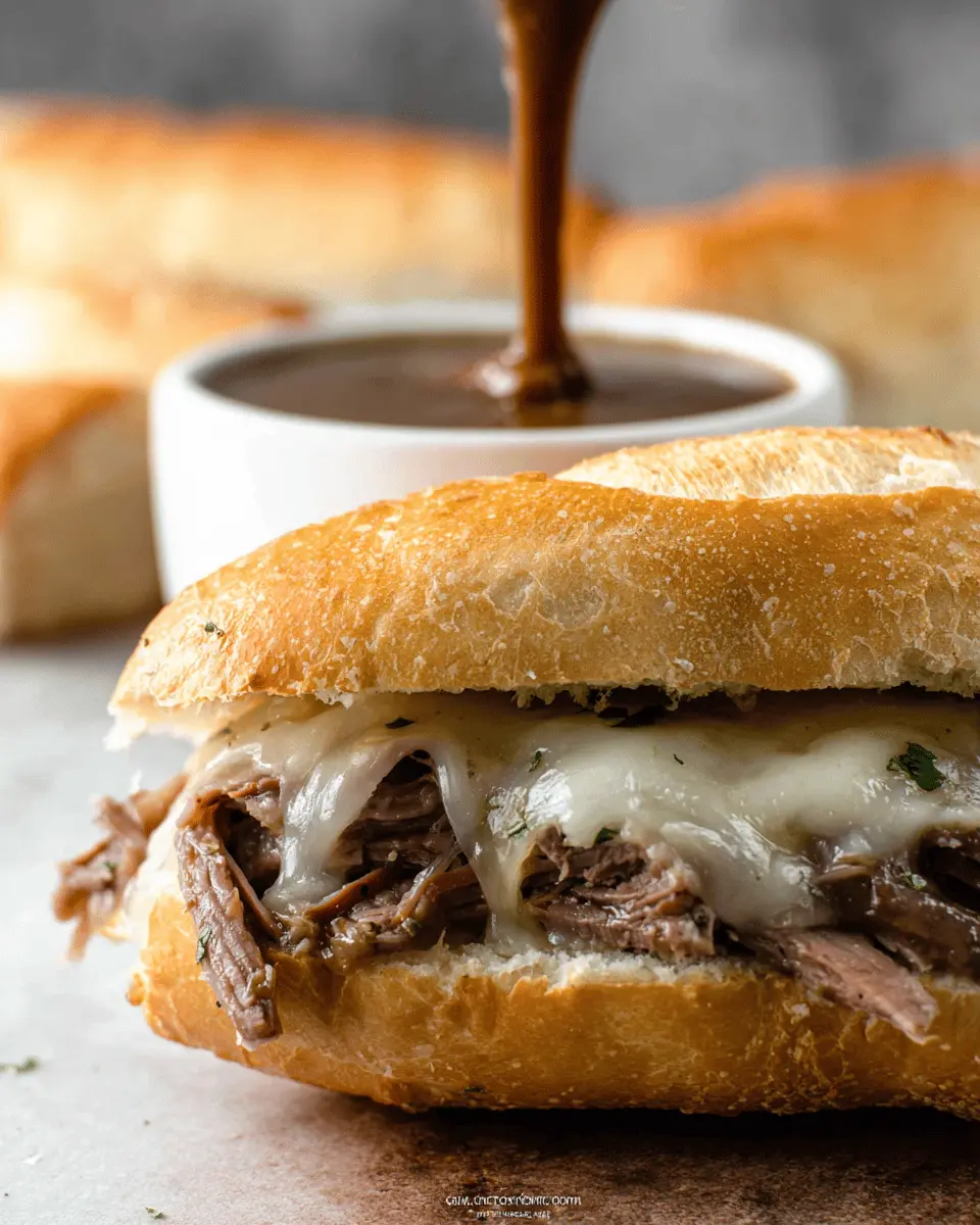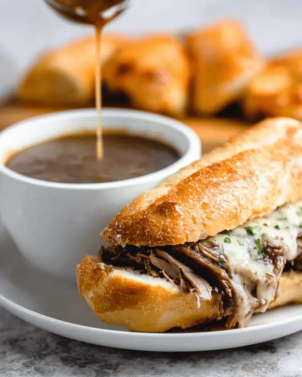 The broth is crucial for a delicious dipping experience. To elevate its flavor, consider adding a splash of Worcestershire sauce or even a hint of soy sauce for depth. If you like a thicker au jus, mix ¼ cup of cornstarch with ¼ cup of water, then stir it into the broth on high until it thickens. This makes for a rich, flavorful sauce perfect for dipping!
