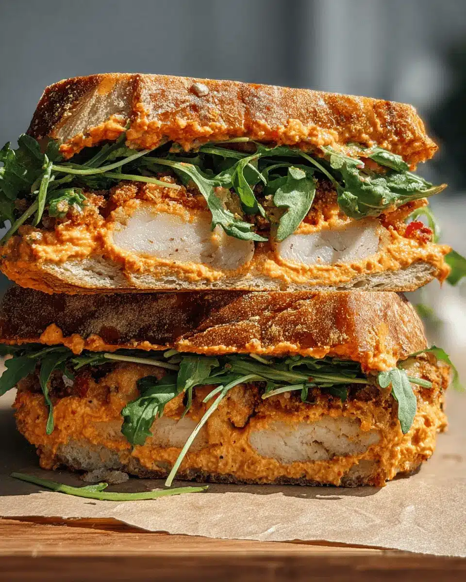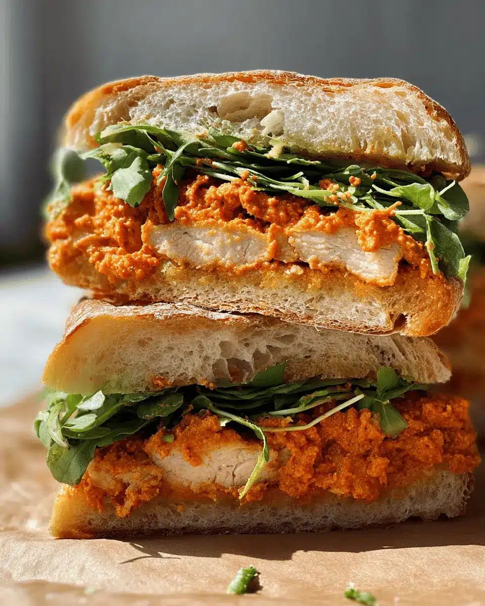 If you're looking for a meat-free alternative, swap the chicken for crispy fried eggplant or even grilled zucchini. The romesco sauce still delivers that delightful depth of flavor, while the fresh salad adds the necessary crunch. This vegetarian take on the Crunchy Chicken Romesco Sandwich is both satisfying and colorful, making it perfect for lunches or picnics.