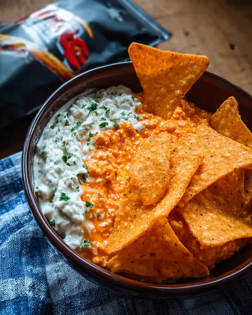 - Classic Chips: While Doritos are a must, try pairing the dip with tortilla chips or veggie sticks for a healthier crunch.