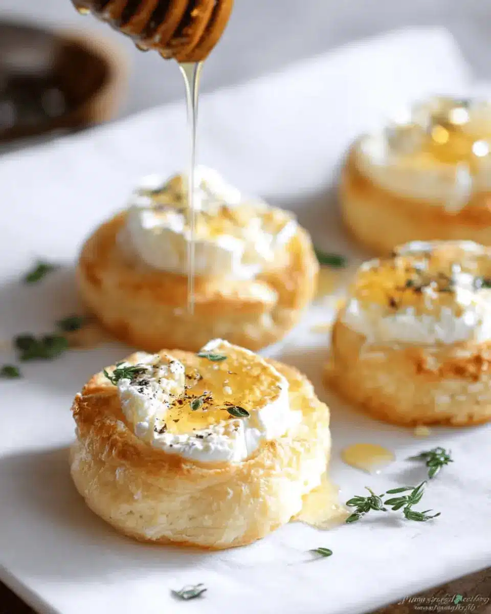 Moreover, the Goat Cheese and Honey Bites are not just easy to prepare; they also look fabulous on a platter. Just imagine the vibrant thyme sprigs garnishing each bite, their green hue contrasting beautifully with the golden pastry. These bites not only taste good but offer a gorgeous presentation—perfect for impressing your friends! Want to learn how to whip them up? Let's dive into the recipe!