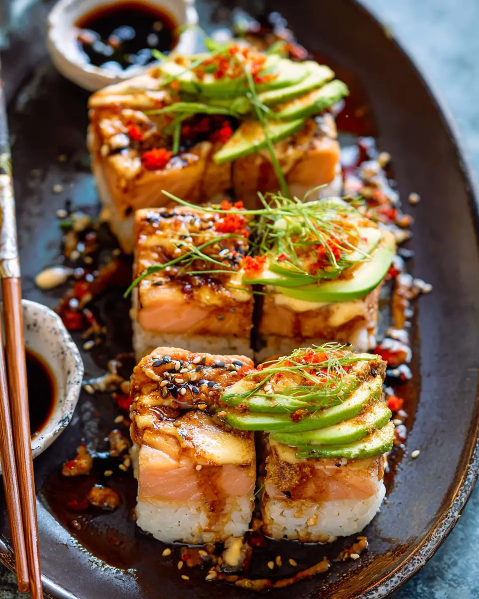 Not a fish fan? No worries! You can create delicious veggie sushi stacks. Substitute the salmon with king oyster mushrooms for a meaty flavor. Crispy tofu is another excellent option, infused with your choice of spicy mayo to keep the zest. Add layers of cucumbers, carrots, and avocado to bring in crunch and creaminess. These vegetarian variations not only satisfy but also provide a fresh alternative for those opting for plant-based meals.