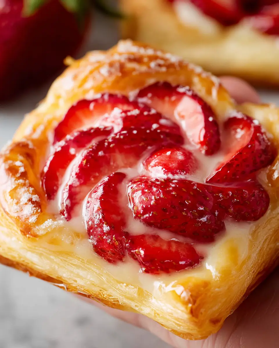 With these simple ingredients, you’re just a few steps away from enjoying a delightful easy strawberry danish. Happy baking! For more tips on baking with puff pastry, check out King Arthur Baking.