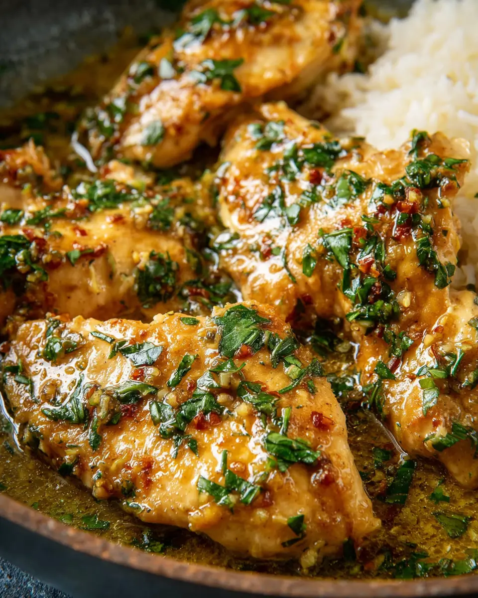 Finally, it’s time to bring everything together! Let the sauce simmer for a few minutes until it thickens slightly. Then, return the chicken to the pan, spooning the luscious garlic butter sauce over each piece. Serve this garlic butter chicken hot, drizzling extra sauce on top and garnishing with lemon wedges, which add a refreshing zest.