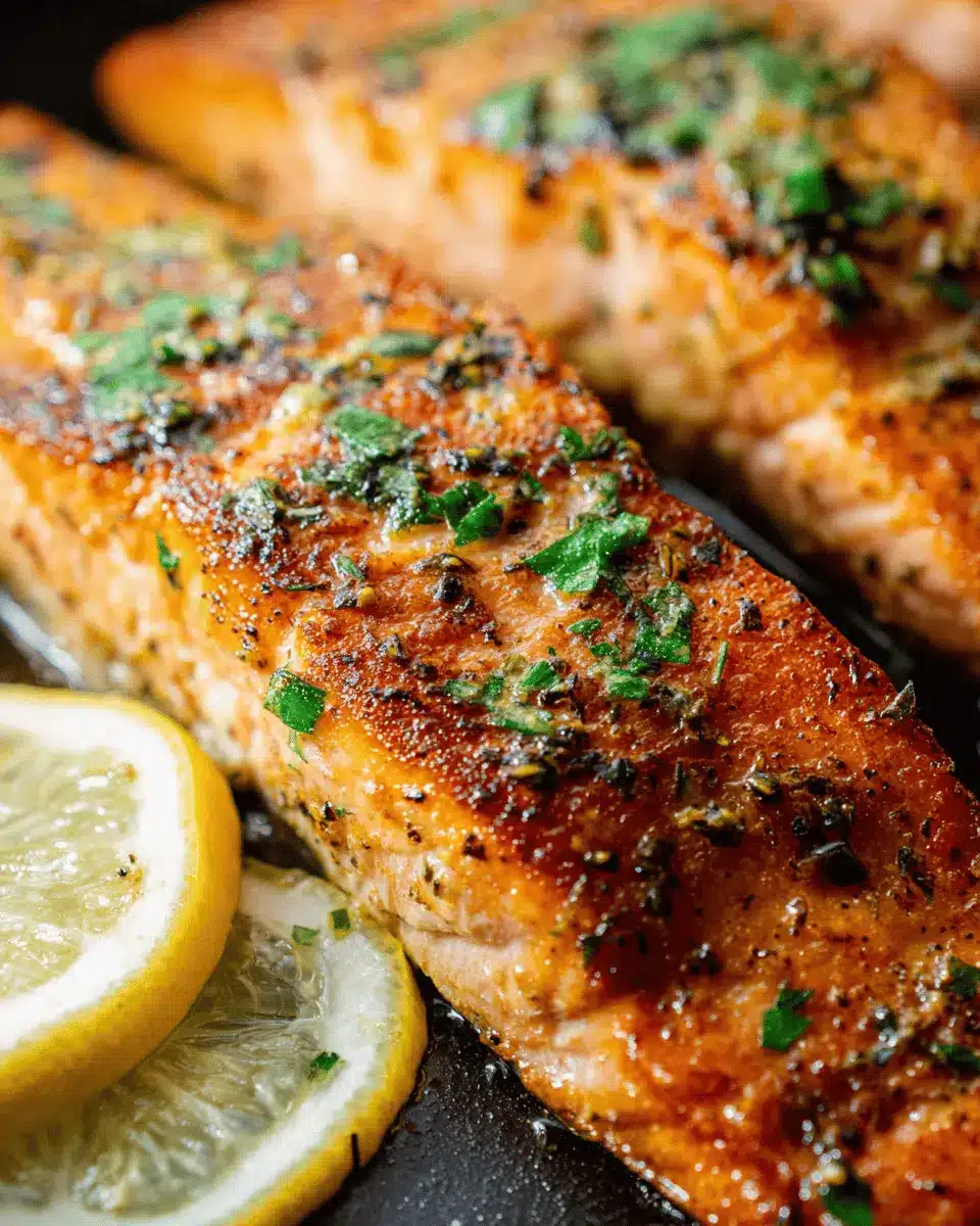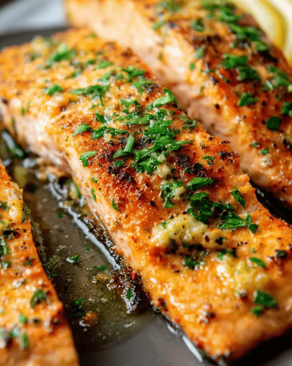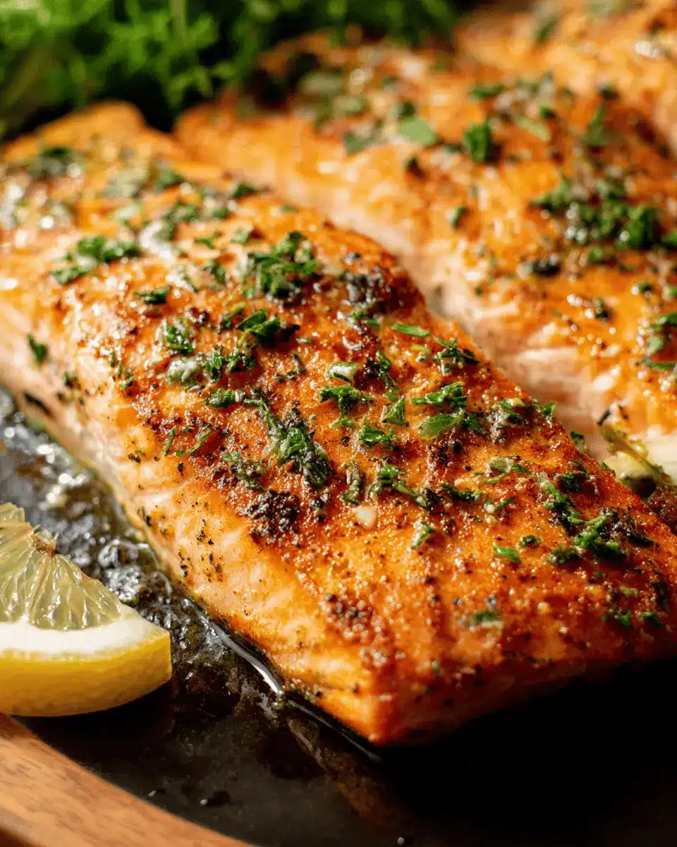 Finally, we’ll bring it all together for a stunning finish. Place the salmon back in the skillet and generously spoon the garlic butter sauce over the top. If you want to get fancy (and let’s be real, who doesn’t?), sprinkle some freshly chopped parsley on top. Serve it up hot, and don’t forget to offer a few lemon wedges on the side for an extra punch of flavor. This dish pairs nicely with a light salad or some roasted vegetables—perfect for impressing your guests or treating yourself on a busy weeknight!