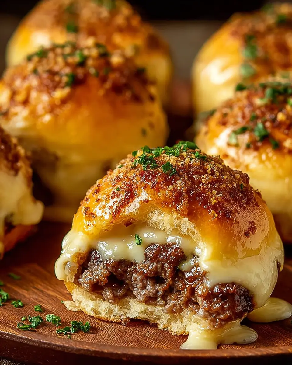 In summary, Garlic Parmesan Cheeseburger Bombs are the perfect blend of flavor and convenience. These delightful treats are sure to impress at any gathering, offering a satisfying bite packed with cheesy goodness and savory beef. Try them today and elevate your next snack session or game day feast!
