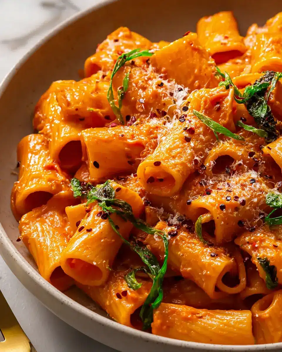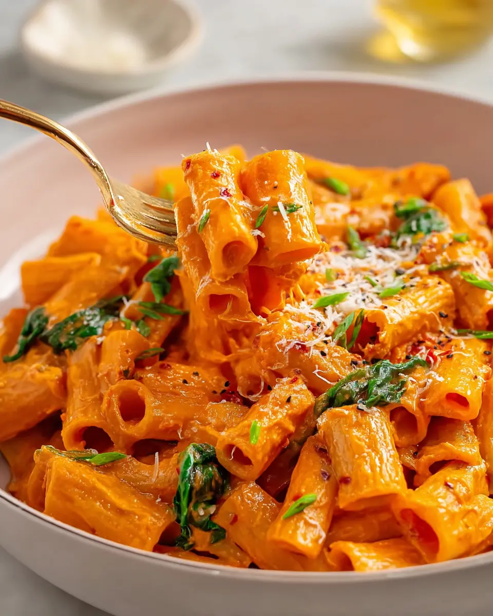 While rigatoni is a fantastic choice for its ability to hold onto the creamy sauce, other noodles like fusilli or spaghetti also work wonderfully. Choose whichever you prefer; just ensure they can complement the rich and spicy sauce for an enjoyable eating experience!