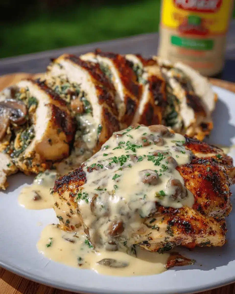 Once your chicken is grilled to perfection, plate it up and generously drizzle that creamy sauce over the top. You can serve your grilled stuffed chicken alongside rice, a fresh salad, or even some crusty bread to soak up all that delicious sauce. Your family and friends will be asking for the recipe!