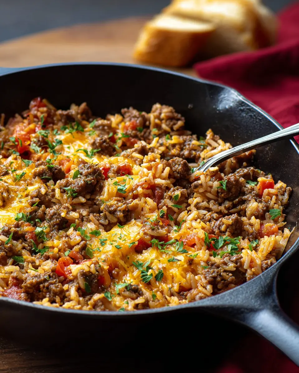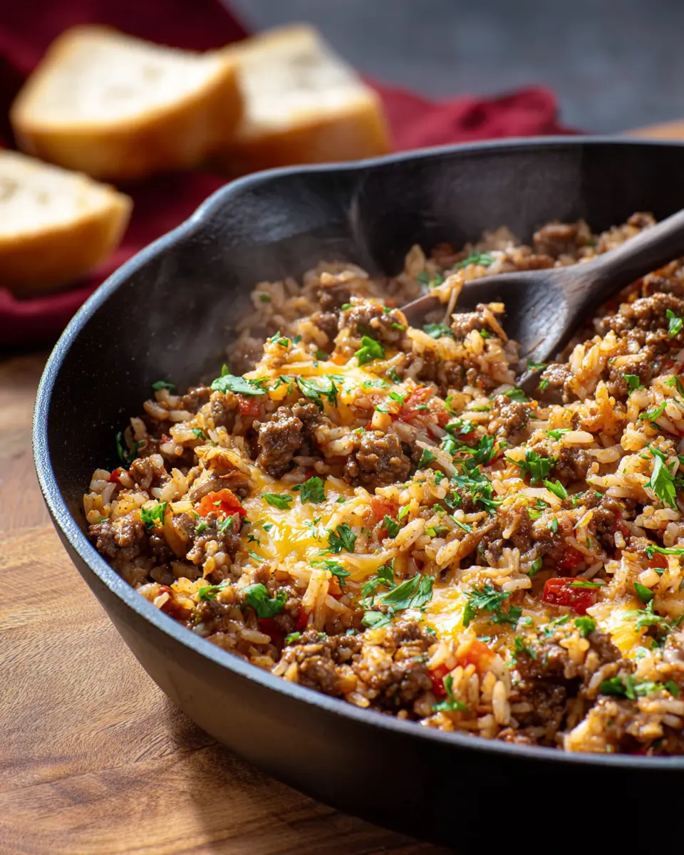 The Ground Beef and Rice Skillet is not just a dish; it’s a comforting meal that brings simplicity and flavor to your table. Packed with protein and hearty ingredients, it’s perfect for busy weeknights. Why not give this easy, one-pan recipe a try and experience its deliciousness for yourself? Your taste buds will thank you!