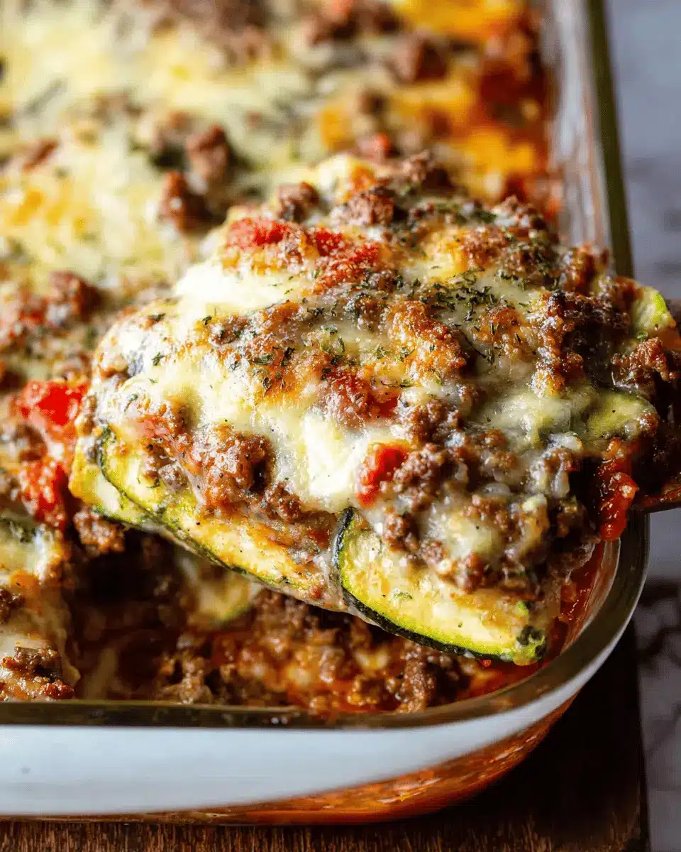Freezing isn’t the best option for this dish. The zucchini can become mushy once thawed, affecting the texture. However, you can prepare and freeze the meat sauce separately. Doing so allows for easy assembly when you’re ready to enjoy a quick meal! For more freezer-friendly dishes, check out this freezing guide for tips on how to preserve your favorite foods.