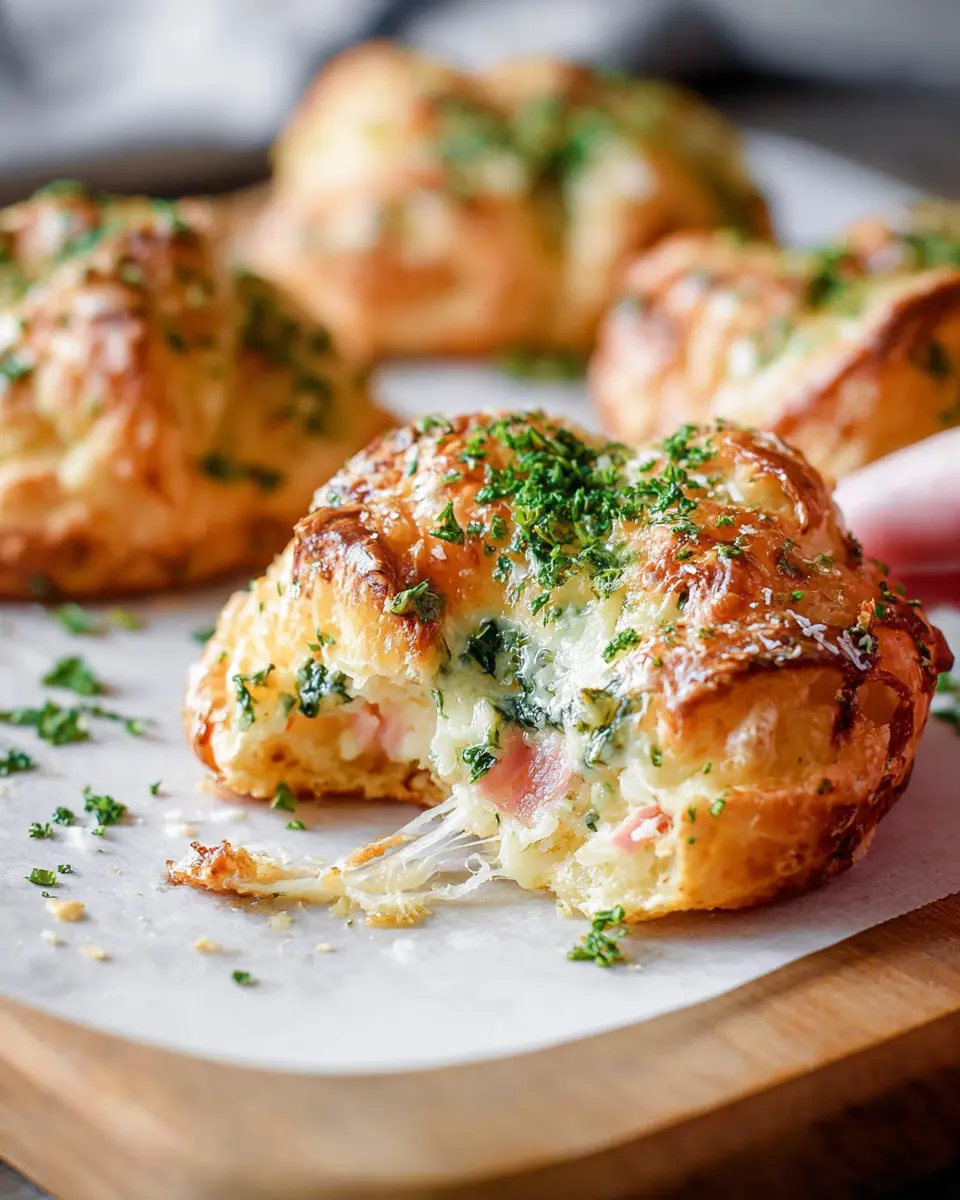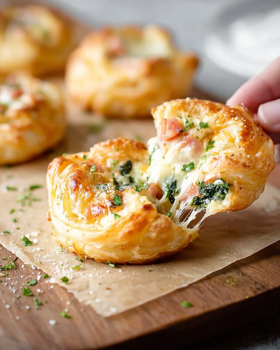 In conclusion, these ham and cheese spinach puffs bring comfort and flavor right to your kitchen. Perfect for parties or a cozy night in, they embody homemade goodness with each flaky bite. Try them today, and enjoy the delightful blend of creamy, cheesy, and savory flavors!