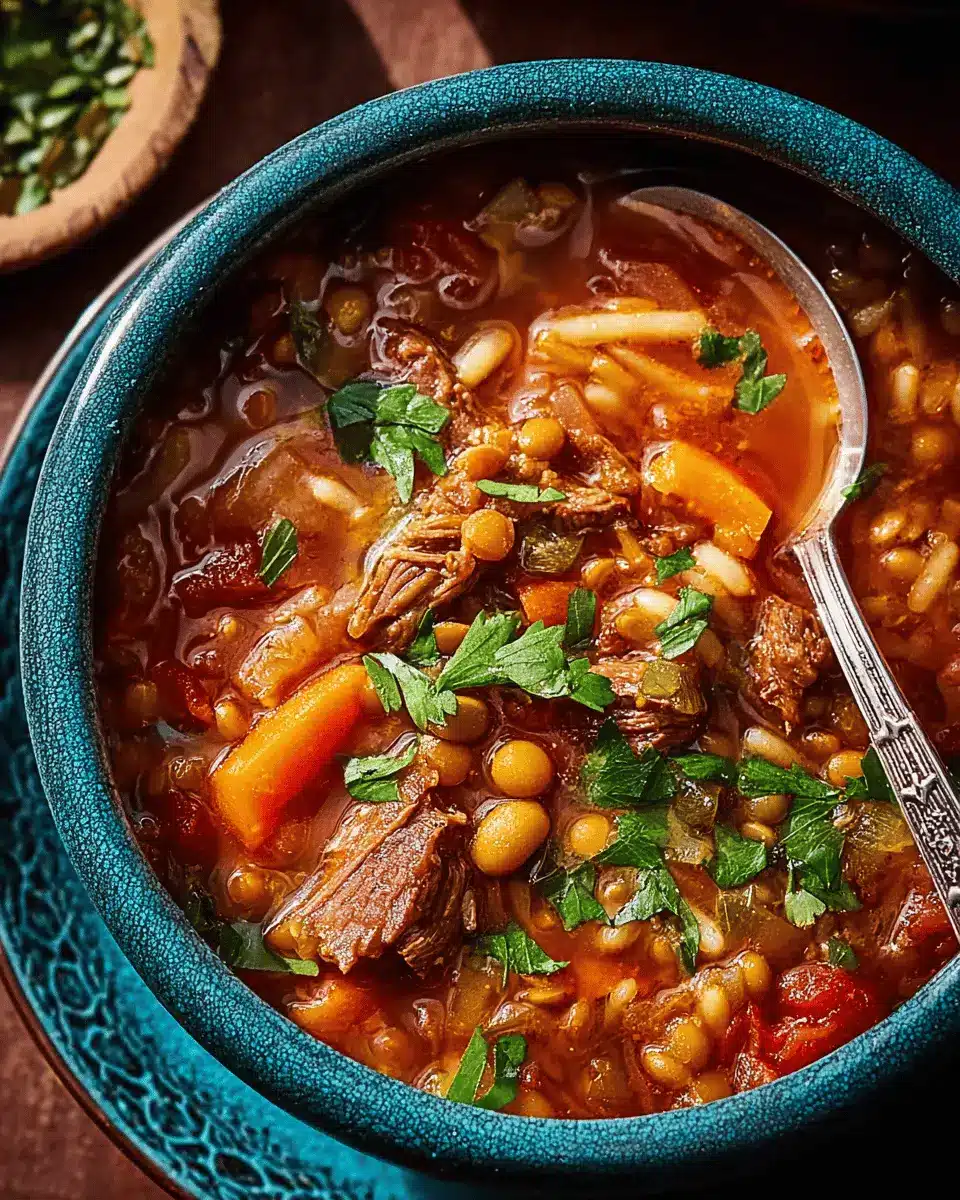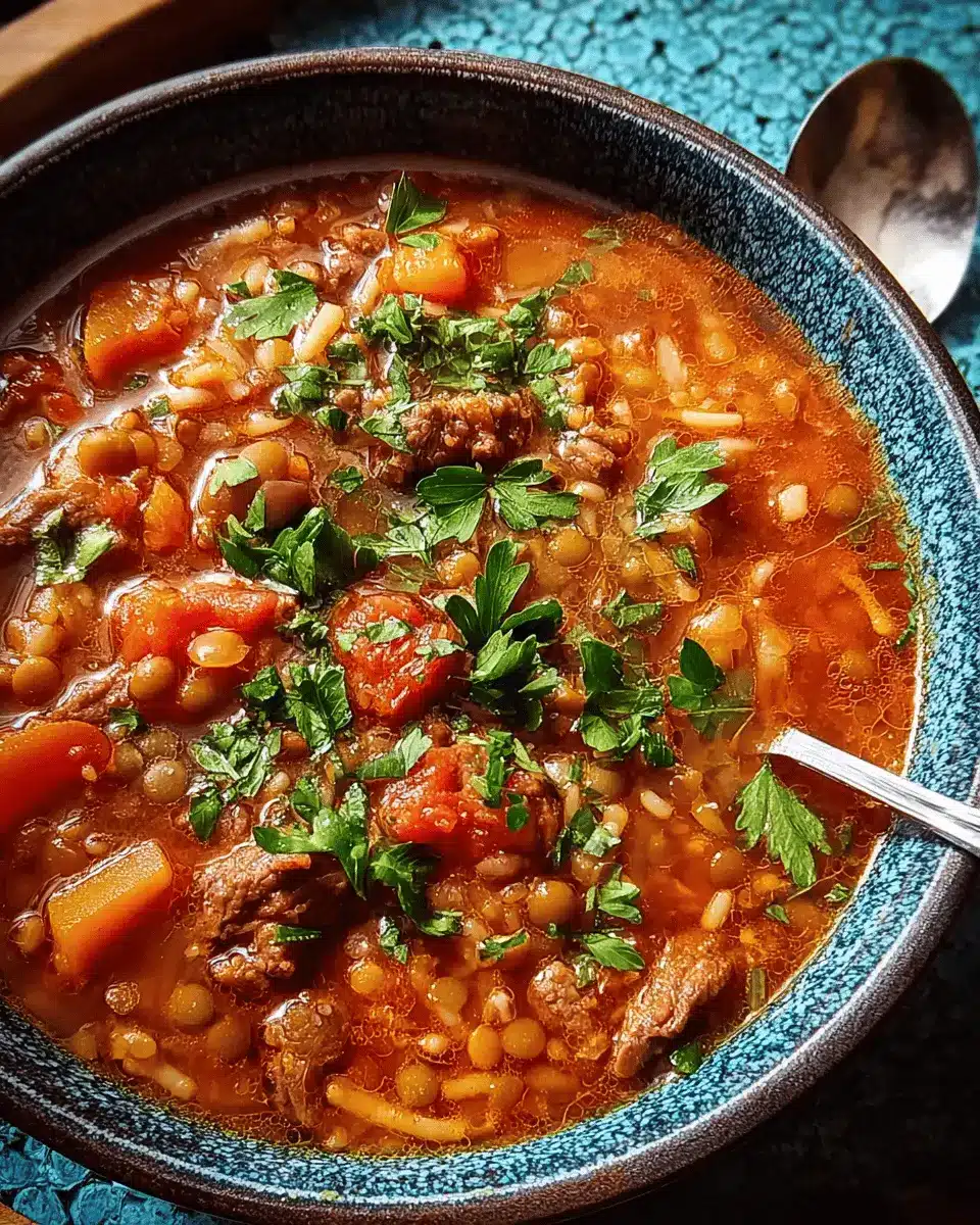 Harira (Moroccan Tomato, Lentil & Beef Soup)