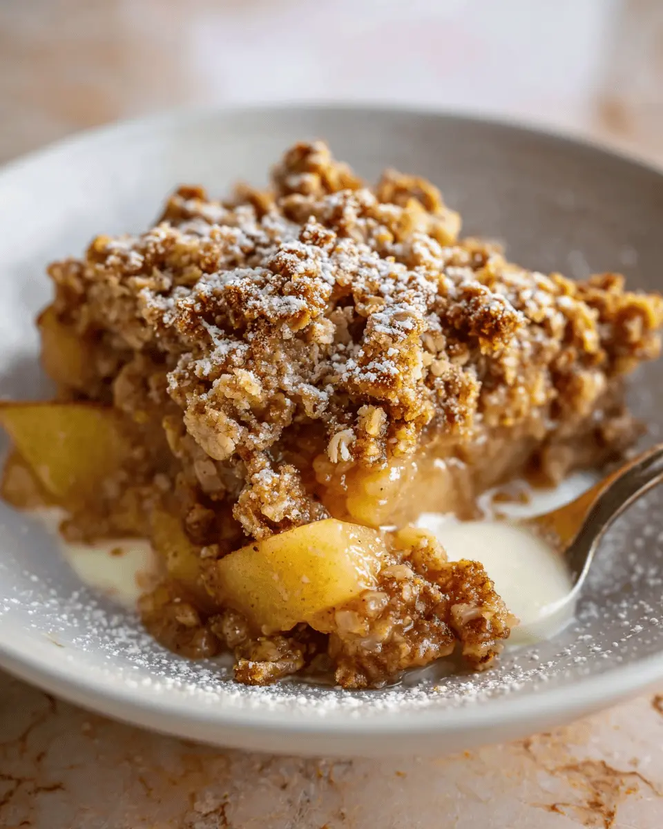 Yes, it is! You can freeze both the apple filling and crumble topping. Assemble the dish as directed, let it cool, and cover it tightly with foil or freeze in an airtight container. When you’re craving a cozy breakfast, just pop it into the oven straight from the freezer, adding a few extra minutes to the baking time.