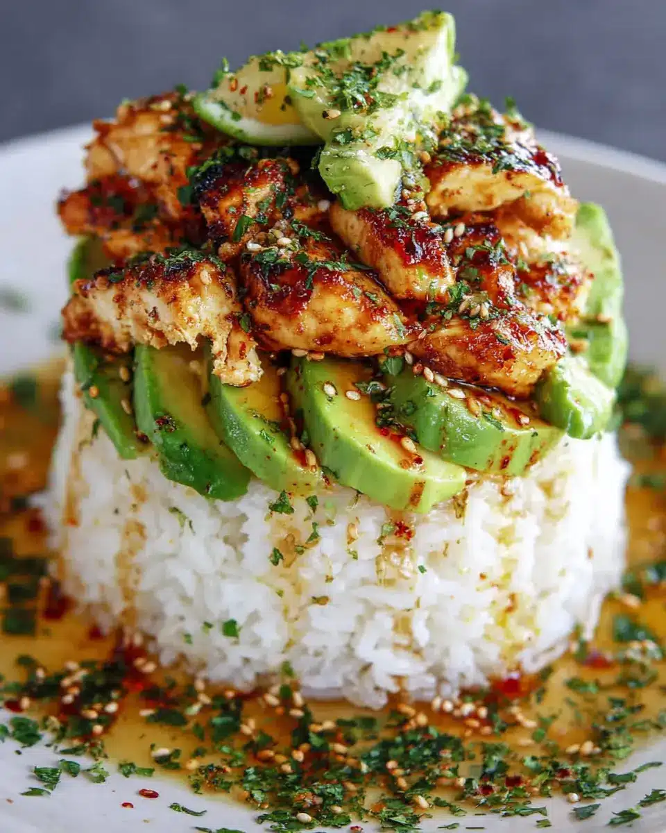 Craving a kick? Transform your honey lime chicken avocado rice stack into a spicy delight by adding diced jalapeños or a splash of your favorite hot sauce to the honey-lime glaze. You can even sprinkle some red pepper flakes over the avocado slices for an extra zing. Trust me, your taste buds will thank you!
