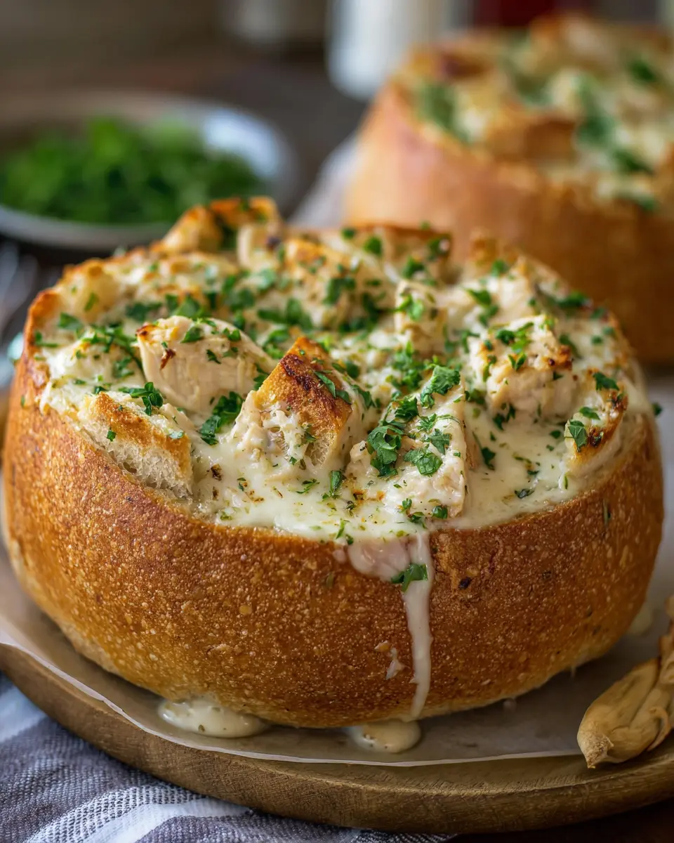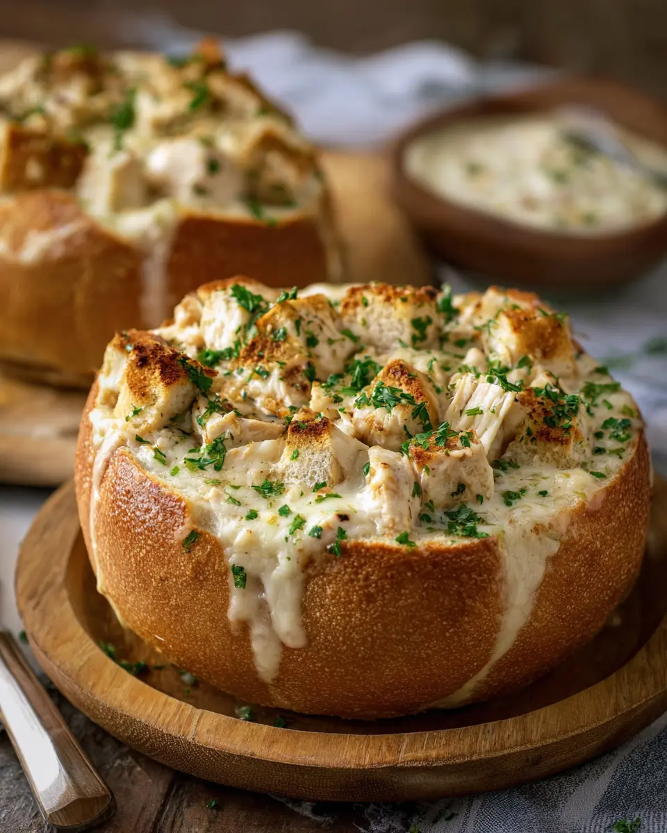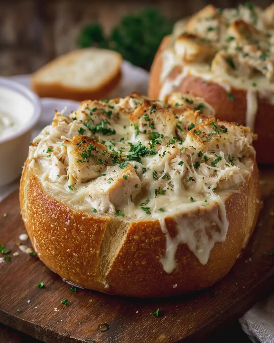 Irresistible Chicken Alfredo Garlic Bread Bowls