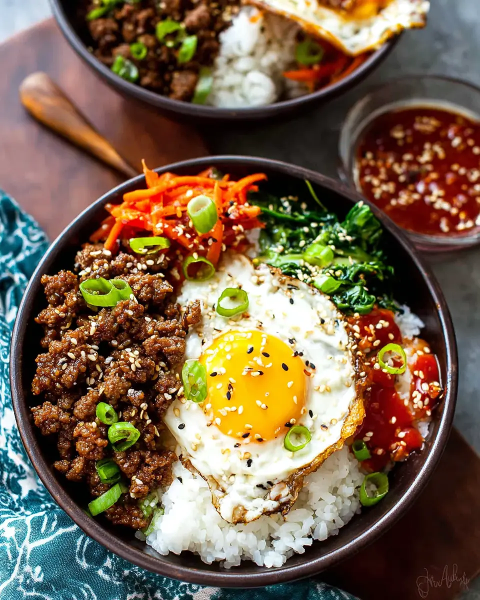 Don’t worry if you’re not a meat eater! You can create delicious vegetarian-friendly Korean Ground Beef Bowls by substituting ground beef with mushroom or tofu crumbles. Both options absorb flavors beautifully and give that satisfying texture. Combine with the same flavorful sauce, and don’t forget to top it off with your fried egg for a hearty meal. Check out Vegetarian Times for more inspiration on plant-based recipes.