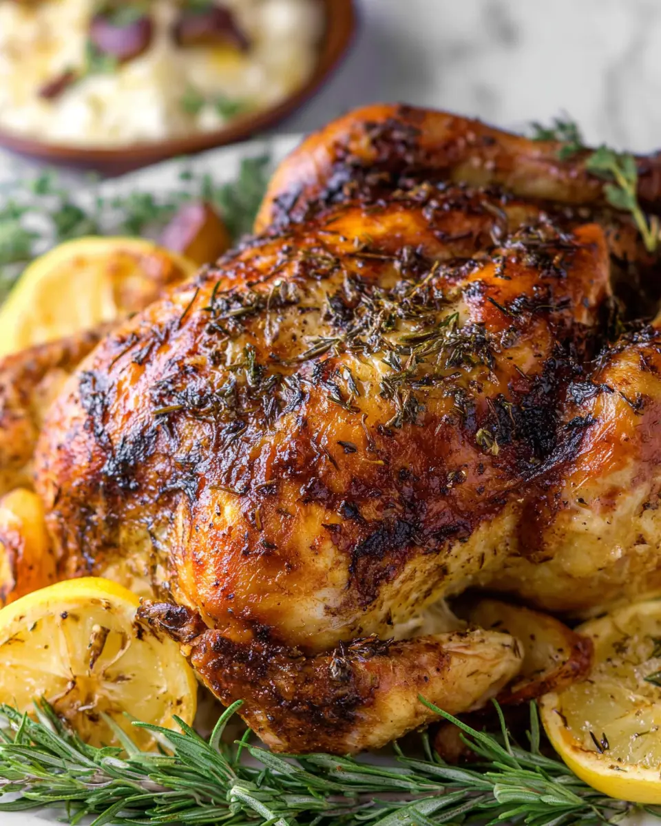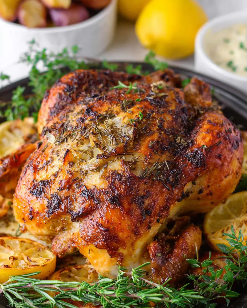 Imagine a whole chicken nestled amid a bed of fragrant herbs, vibrant lemon, and savory garlic—each ingredient playing a crucial role in creating a symphony of flavors. The bright notes from the lemon cut through the richness of the chicken, while the herbs enhance its natural taste, making it delightful for any occasion.