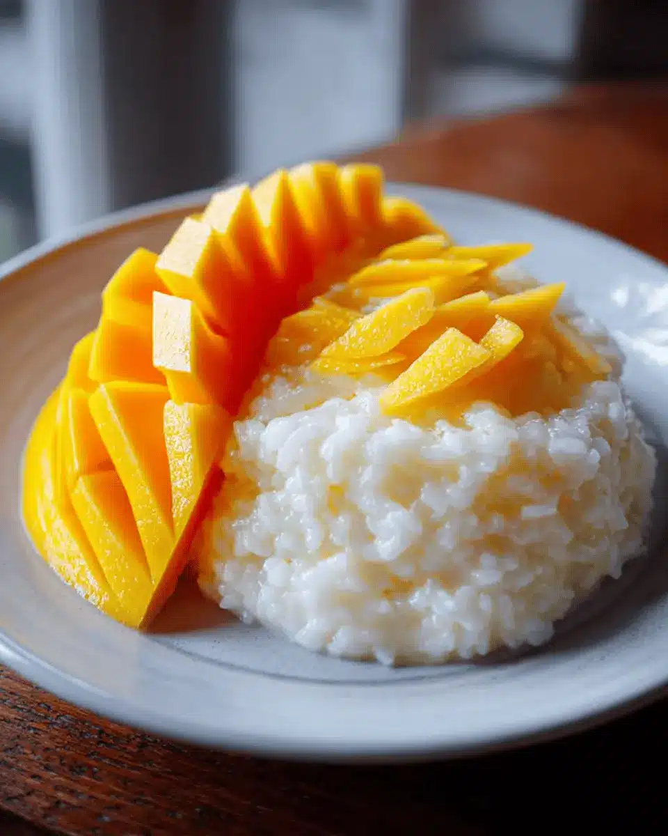 Texture Contrast: Pair your sticky rice with crispy fried shallots or toasted sesame seeds for an added crunch. The contrast will enhance the creamy rice and luscious mango.