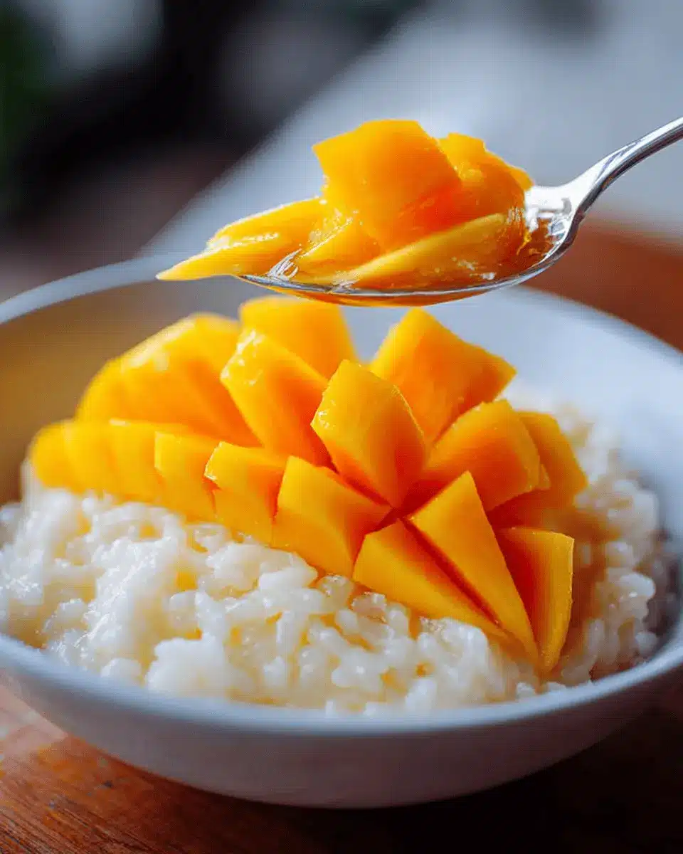 Complementary Flavors: Drizzle extra coconut milk on top for a richer experience, or sprinkle with a pinch of salt to heighten the sweetness of the mango.
