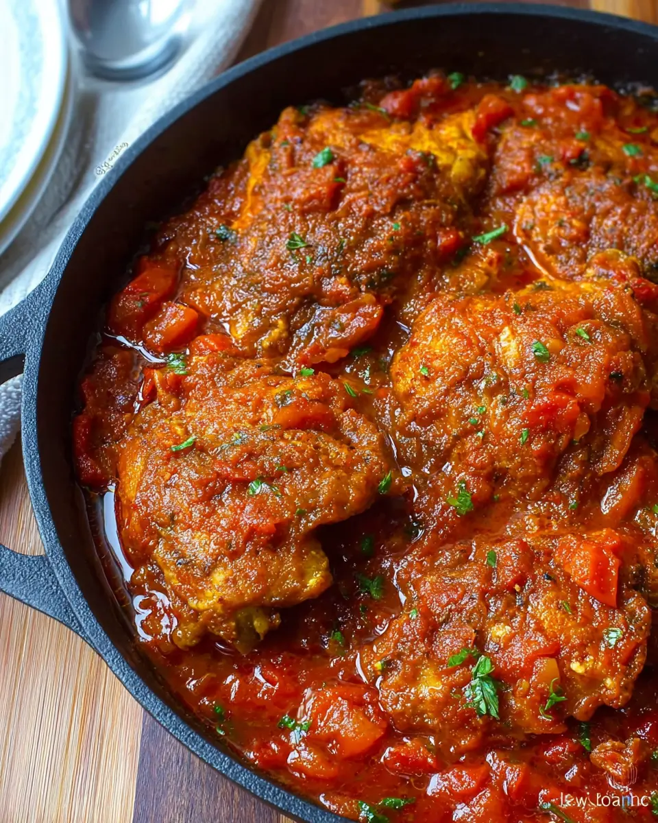 Nigerian Chicken Stew is a flavorful West African dish made by simmering chicken thighs in a rich tomato and pepper sauce. With its deep, vibrant flavors and the option to adjust the spice levels, this stew is a staple in many Nigerian households. Often enjoyed with rice or fufu, it’s the perfect comfort food for any occasion.