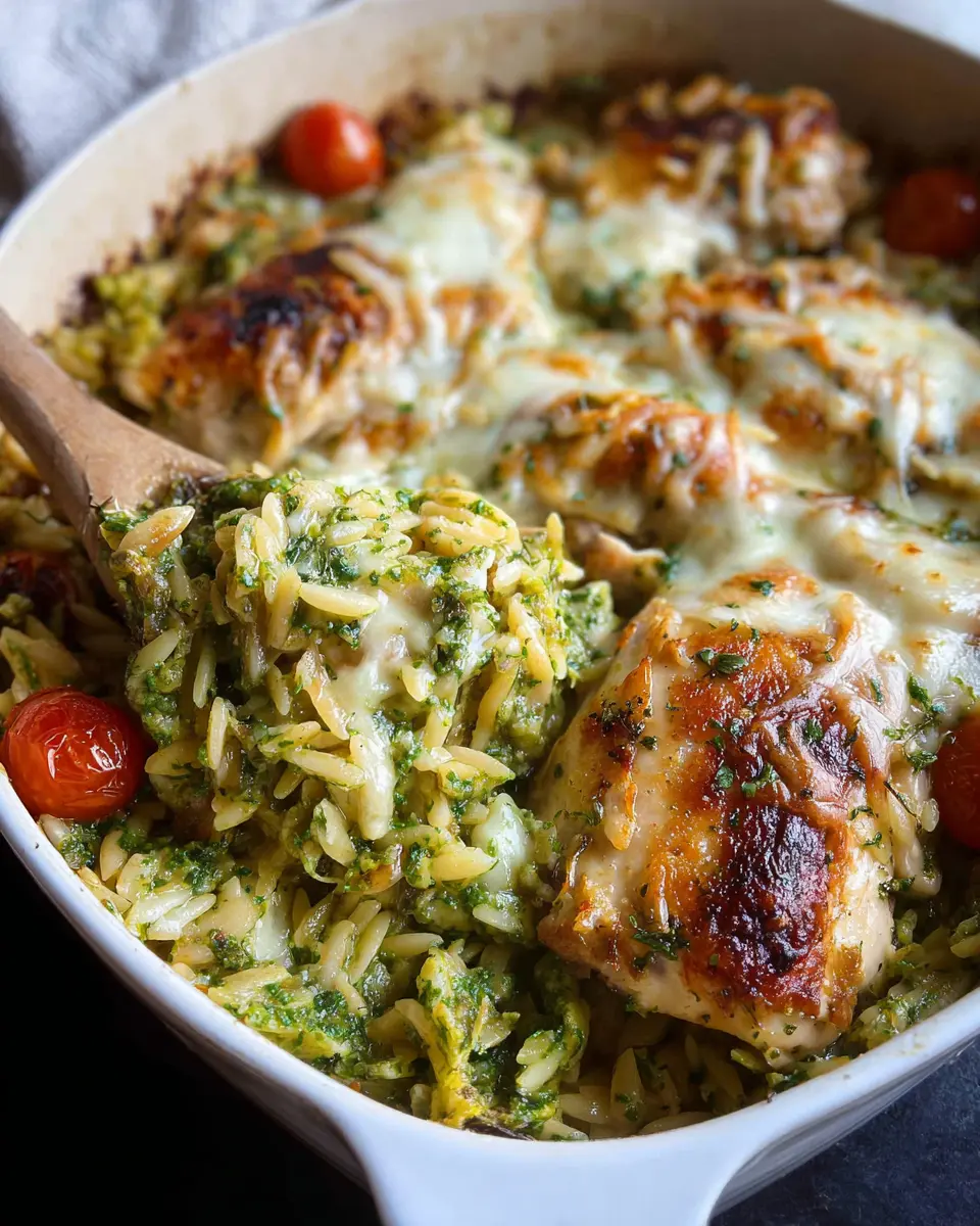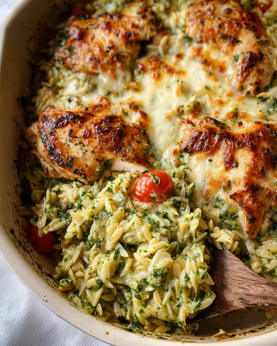 One Pan Chicken with Orzo and Pesto