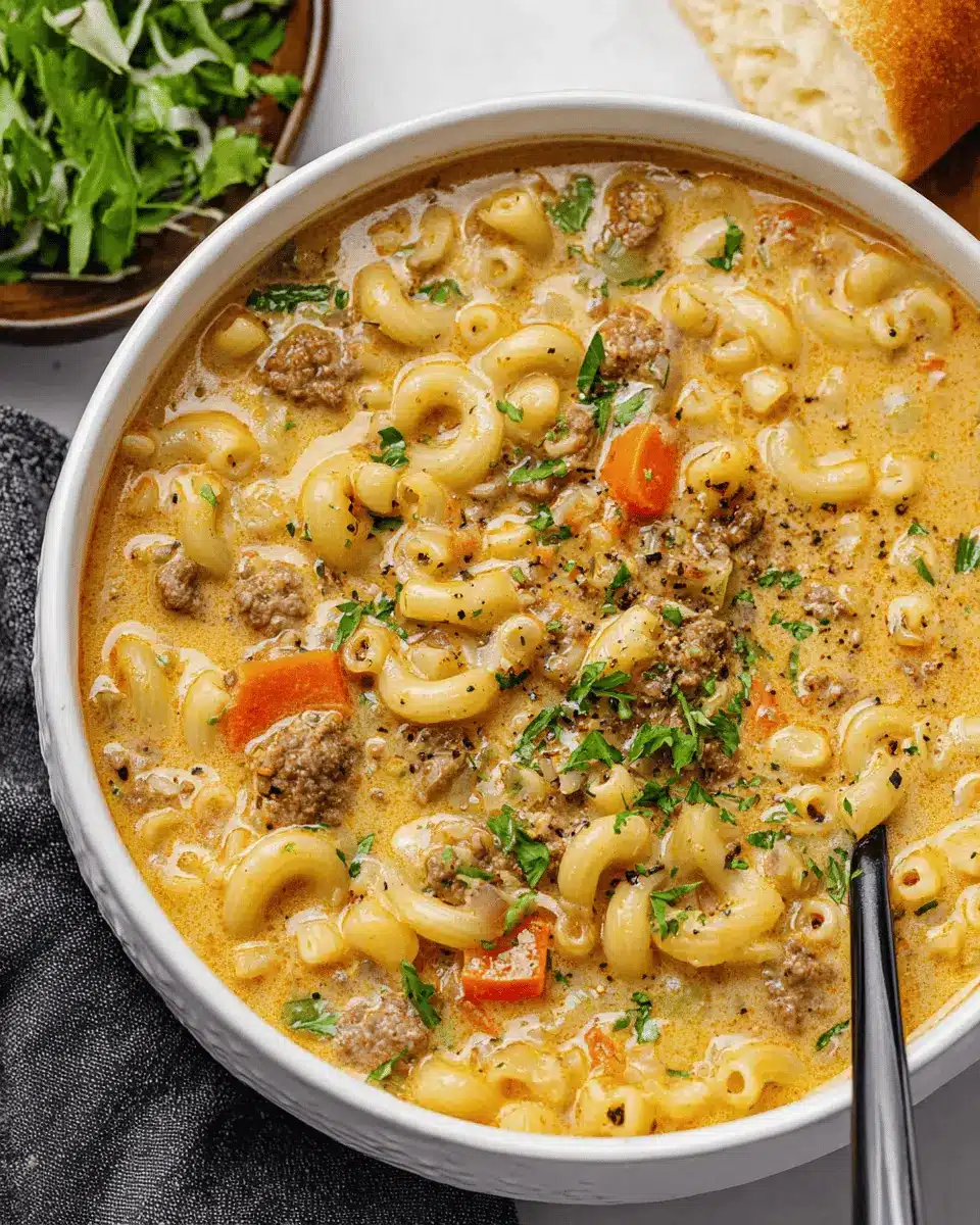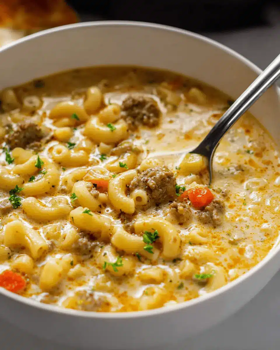 One-Pot Macaroni Cheeseburger Soup – NO VELVEETA!