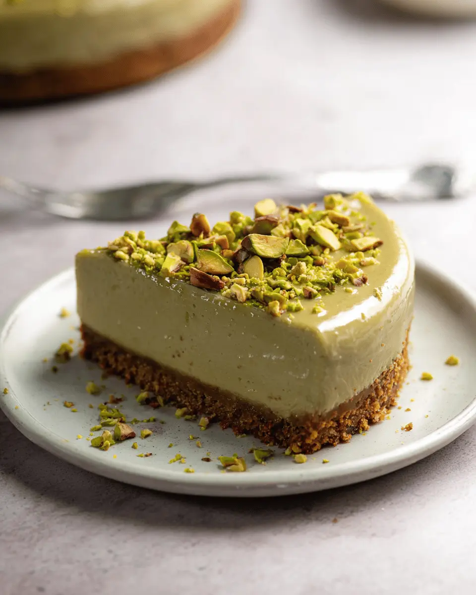 Plant-based eaters can enjoy this creamy delight too! Substitute traditional dairy with vegan alternatives, such as cashew cream or coconut cream for the cheesecake filling. Use a simple almond or oat crust instead of Graham cracker crumbs. The result is a vegan pistachio cheesecake that's just as indulgent, without sacrificing flavor or texture.