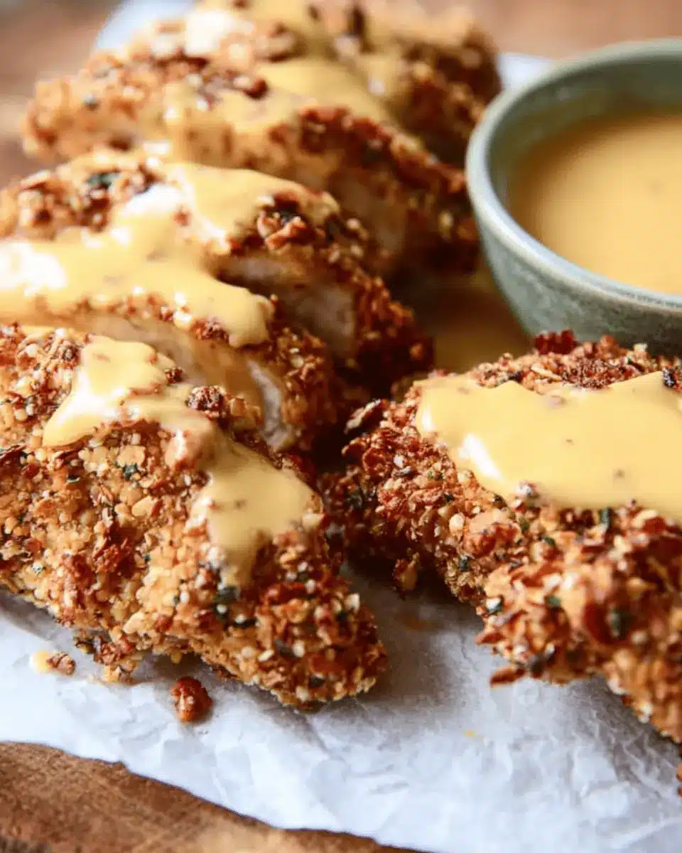 For a filling lunch option, turn your pretzel-crusted chicken into hearty sandwiches. Just place the cooked chicken between toasted buns, adding some greens and a drizzle of the cheesy mustard sauce. It’s a fantastic way to impress guests or enjoy a comforting meal at home. A side of sweet potato fries would be the perfect complement—check out this sweet potato fry recipe for a scrumptious side!