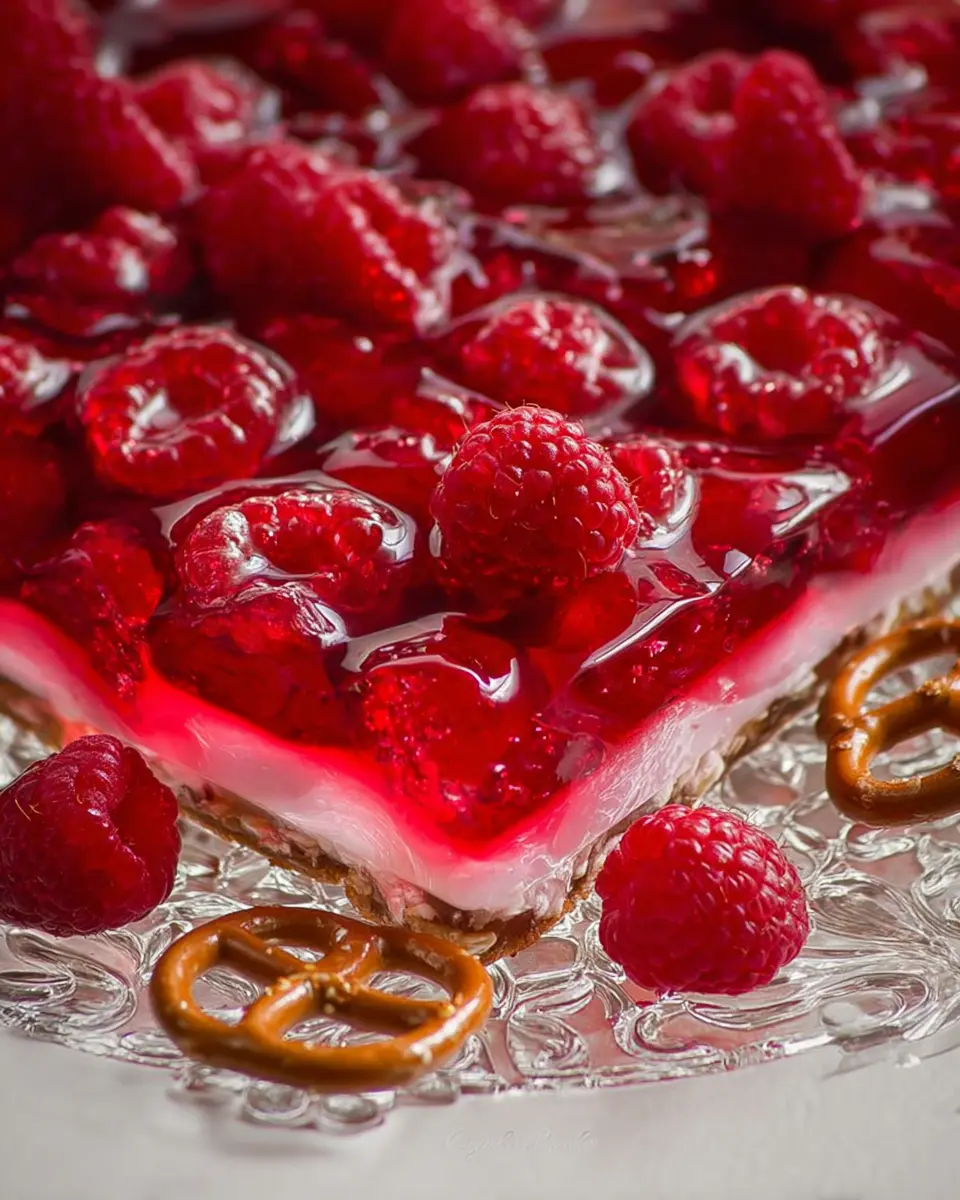 Imagine this: you’re hosting a gathering, and your friends enter the room only to be greeted by this stunning dessert. As they dig in, they experience the satisfying crunch from the pretzel crust, followed by the creamy layer of sweetened cream cheese, topped with bursting raspberries enveloped in silky jello. It’s no wonder this dish has become a favorite at potlucks and family gatherings!